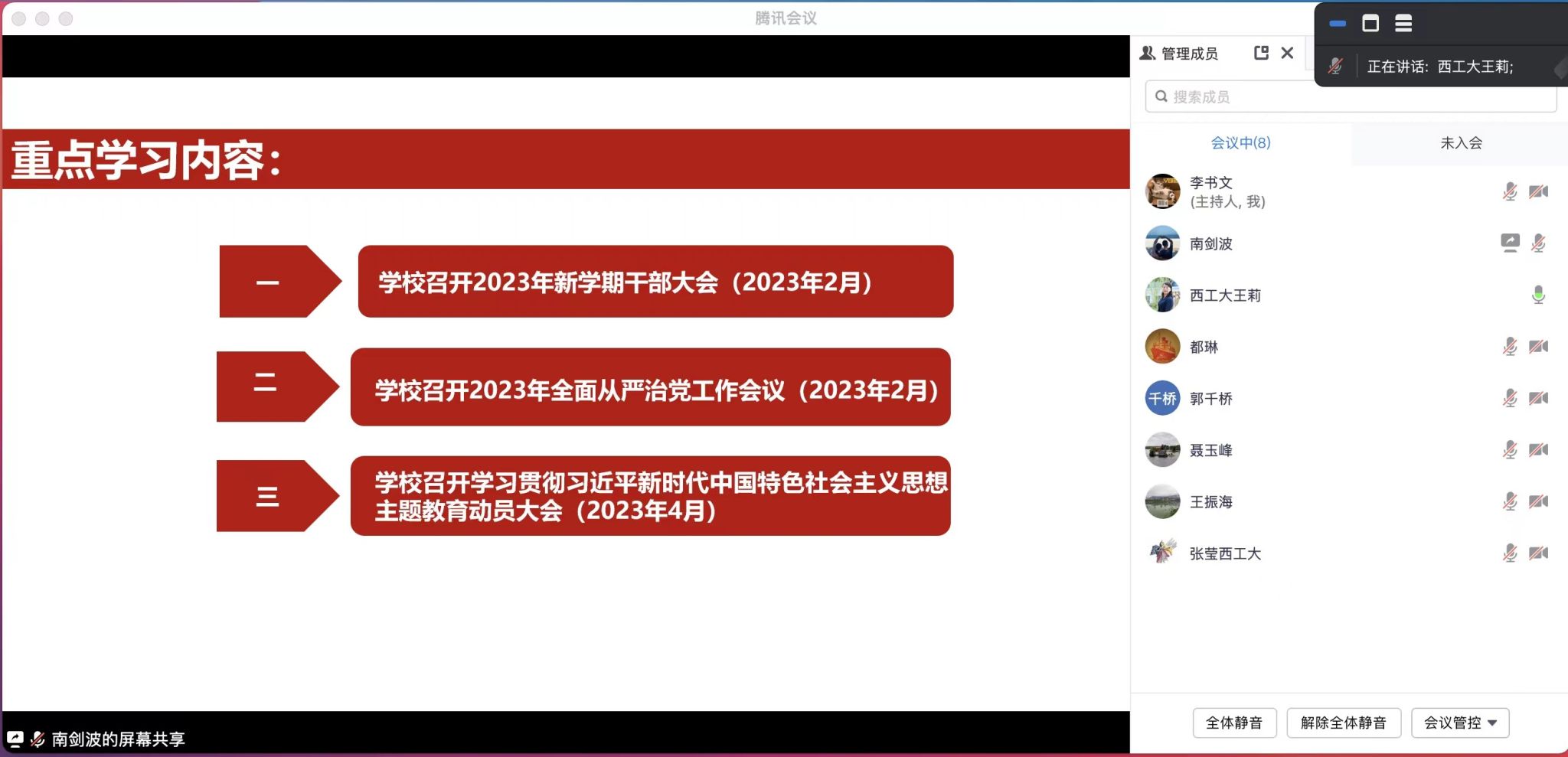 会上,王莉就深入学习开展主题教育专题学习的重大意义、主题教育的目标要求任务、扎实开展主题教育工作进行宣讲。会议指出,要坚持学思用贯通、知行信统一,把习近平新时代中国特色社会主义思想转化为坚定的理想,把握“学思想、强党性、重实践、建新功”的总要求,以具体的目标为引领,以解决问题为抓手,高标准、高质量完成主题教育的各项任务。会议要求,要把主题教育贯穿到理论学习、人才培养、科学研究、社会服务等各项工作中去,确保主题教育融入日常、抓在经常,扎实推进、取得实效。