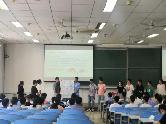 随后,王莉老师带着同学们开展了主题为《以终为始,不负青春,再启新程,载梦起航》的破冰活动。在王老师的组织下,学生们按照班级分成10个小团队,每个团队成员在白纸上画出手印,分别在手印的五指上写上自己的姓名、最突出的性格特点、最感兴趣的事情、最具竞争力的能力、大学里最期待的收获,并在纸上写出团队名称和口号。完成后每个团队依次上台展示。整个过程中大家都非常积极,同学们的欢笑声和掌声不断!展示中看到团队名称各具特色,有的数学味浓厚,有的富有诗意又蕴意不凡,有的紧扣国家对青年的寄托和期许。同学们的讲解也是特点鲜明,有的伴着家乡口音诙谐幽默地讲出,有的像解读一首诗般娓娓道来,充分展现出了韩国av 大一新生的个性和风采!