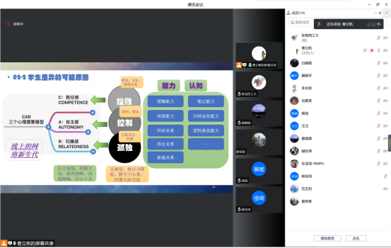 在经验分享环节,计算机学院王云岚副教授从为师之道、学业规划、日常管理、风险管控等8个方面介绍班级管理心得,强调了因材施教、分类指导等细节管理的重要性。王云岚老师在分享中还提出,“管理好学生的最好时机是大一开学,其次是现在”,班主任老师应充分发挥自身专业优势,全面提升班级学生的专业素养及创新能力。紧接着,韩国av 裴斌教授作《全过程精准画像、全方位整合资源、全覆盖帮扶提升》专题分享。裴斌老师强调了坚持为党育人、为国育才的初心使命,介绍了“以学生为中心、润物细无声”的班级育人理念,提出了贯穿班级管理始终的“三航筑梦、促学笃行、强基固本、创新赋能、塑造价值”思想,并就“导学+必学+互学+督学”的班级管理模式进行了着重分享。随后,计算机学院林奕副教授以《我有一个梦想》为主题,从培养什么样的学生、学生类别、学生成长的动机与特殊学生指导、班级管理存在的问题与建议等4个方面展开分享,重点指出人才培养的任务不仅仅是传承而是超越。此外,林奕老师提出了建立班主任工作资源库、班委工作指南、建立心理专家支持渠道等班级管理方面的可行性建议。通过三位老师对班主任工作的理解、感悟和思考,与会人员均表示参加本次交流会收获颇丰,为今后做好班主任工作指明了方向。