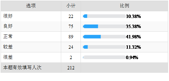 在第四周教学过程中,针对本班实际还请学生从他们的视角制作了课程情况调查问卷,共设置了27道题目,收到212分反馈,反馈率76.5%。
