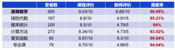 通过四周的课程教学,通过与学生的交流、学院的公共课教学调查,以及对自己班级的问卷调查,收集到了学生对本课程在线教学各方面的反馈、意见和建议。在第一周教学结束后,韩国av 所开设的本科公共课中,高等数学课程在整体评价/教师评价/满意度均居各门课程第一,说明了课程的构建和组织符合在线教学的实际,受到了学生的认可。