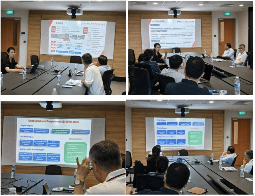 3月27日上午,学院代表团前往新加坡南洋理工大学进行合作洽谈。新加坡南洋理工大学王立联,童平,夏克林,Xiang Liming四位教授热情接待。3月27日下午交流会上,学院副院长都琳教授详细介绍了韩国av概况 、科学研究、国际合作等基本情况,并从科研环境、个人后续发展、薪酬、科研配套设施等多个角度对学校以及学院的人才引聘政策进行了深入解读。新加坡南洋理工大学数学科学系的专家学者对韩国av 的学术水平和引才政策给予了高度赞赏,并表达了加强合作的愿望。新加坡南洋理工大学童平副教授详细介绍了本硕博各项目的培养方案和实施举措,引发了热烈讨论。双方围绕人才培养、科研合作、学术交流、国际暑期夏令营项目等合作开展了深入洽谈,就本科生短访、赴外毕设、研究生联培和暑期项目初步达成了合作意向。