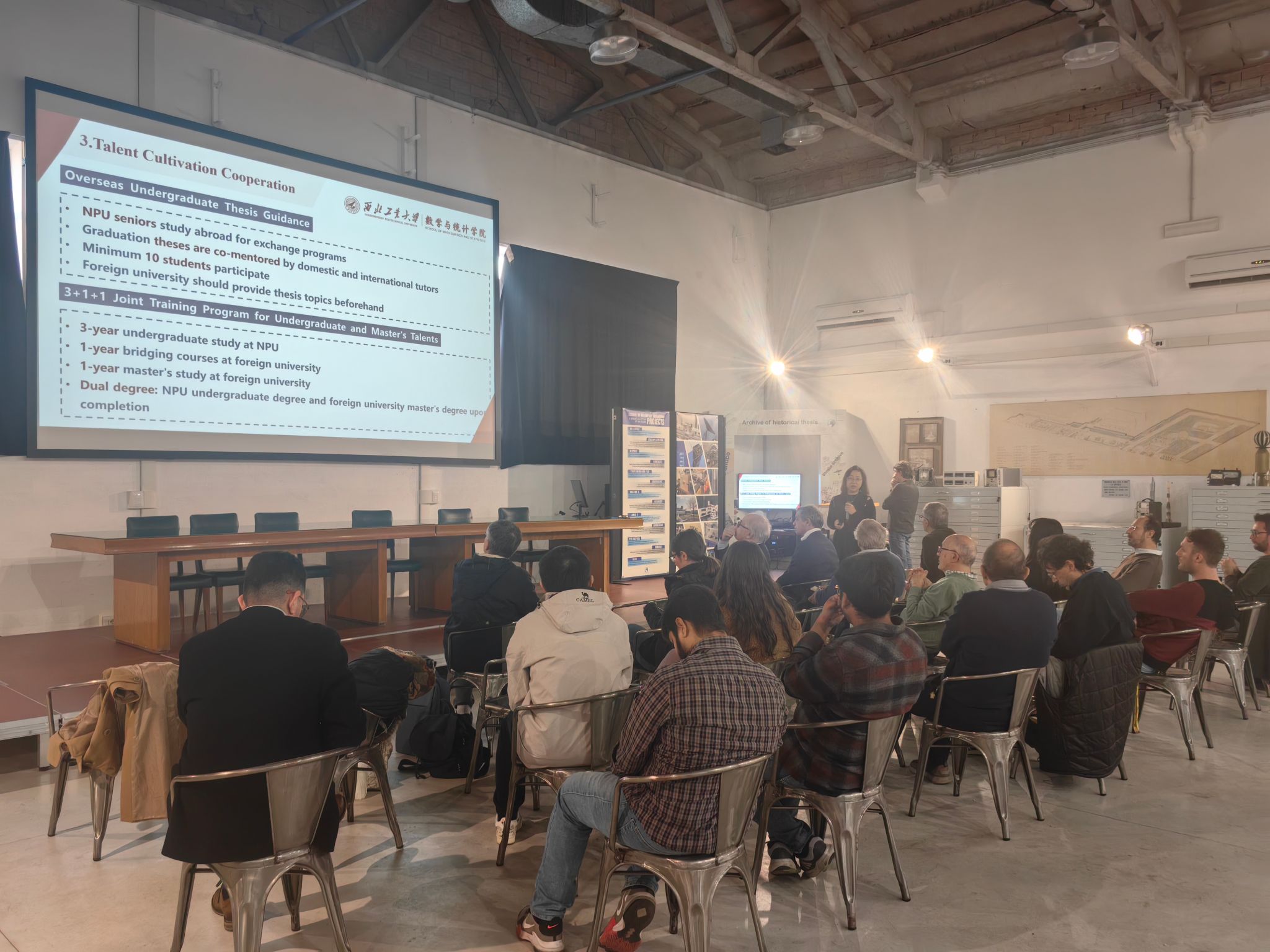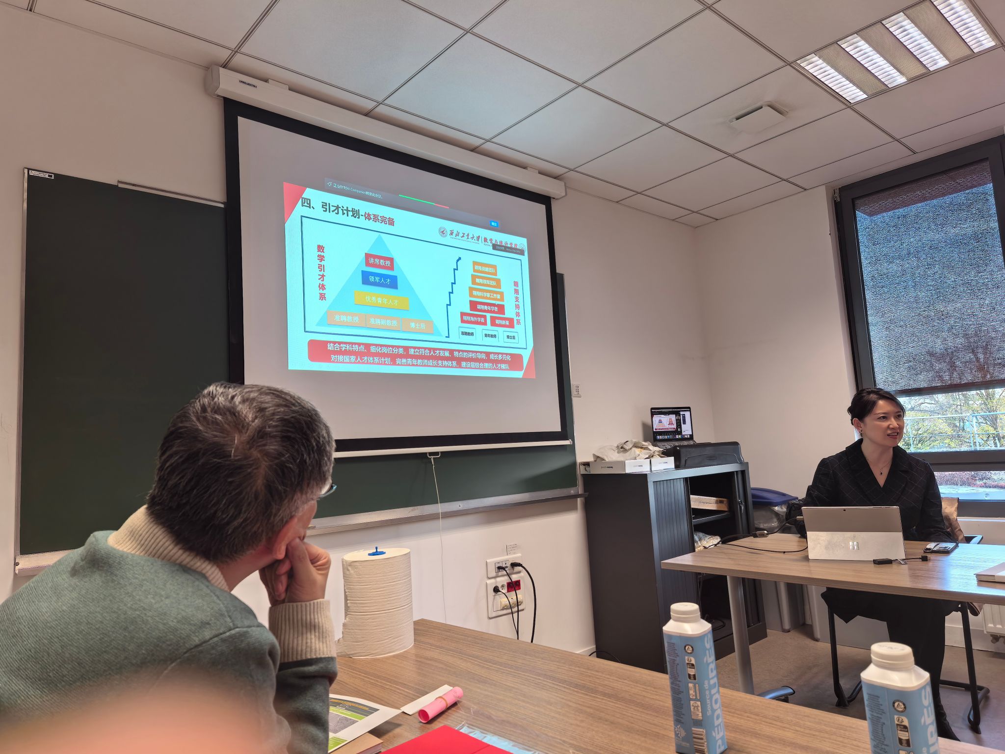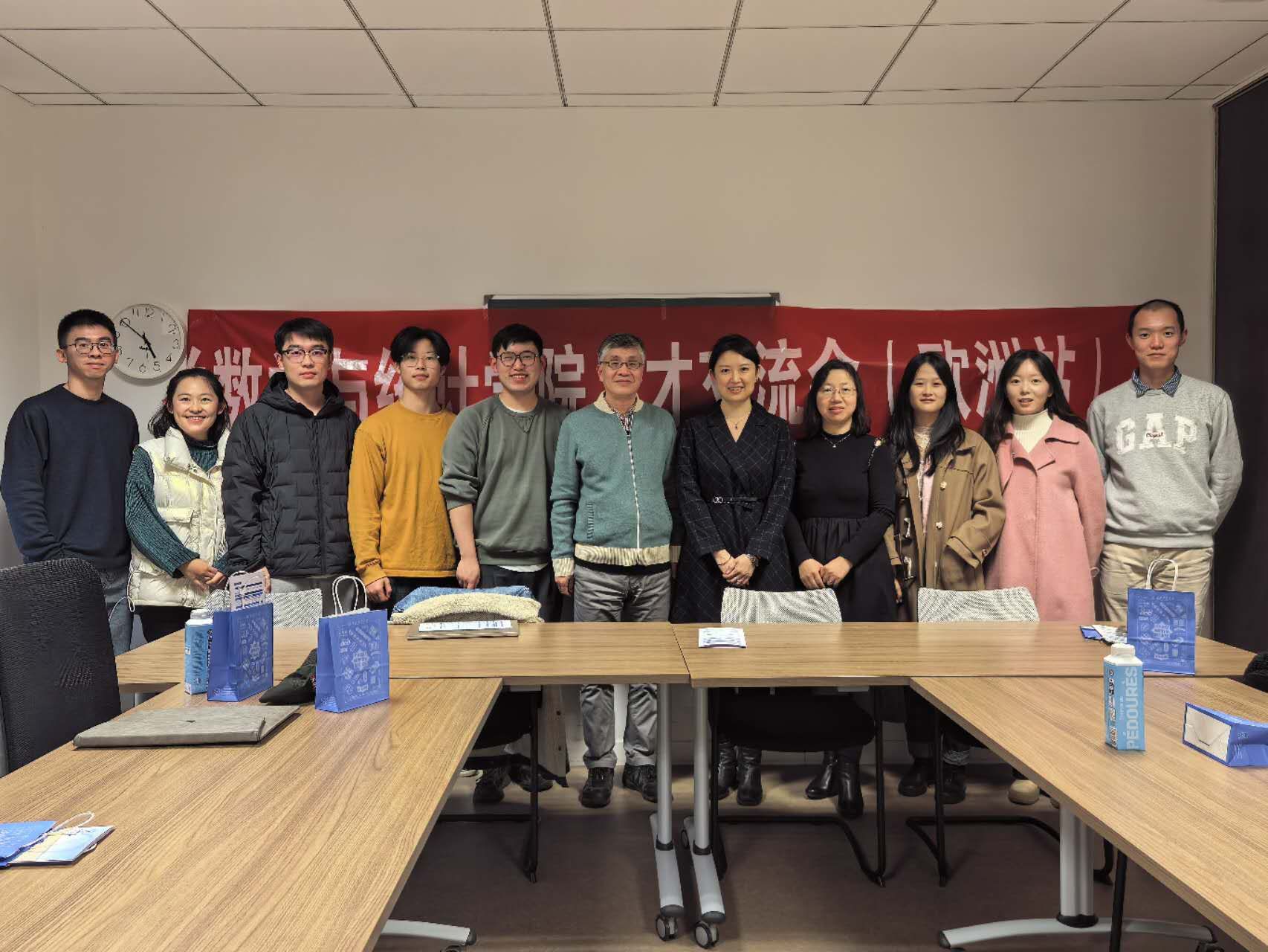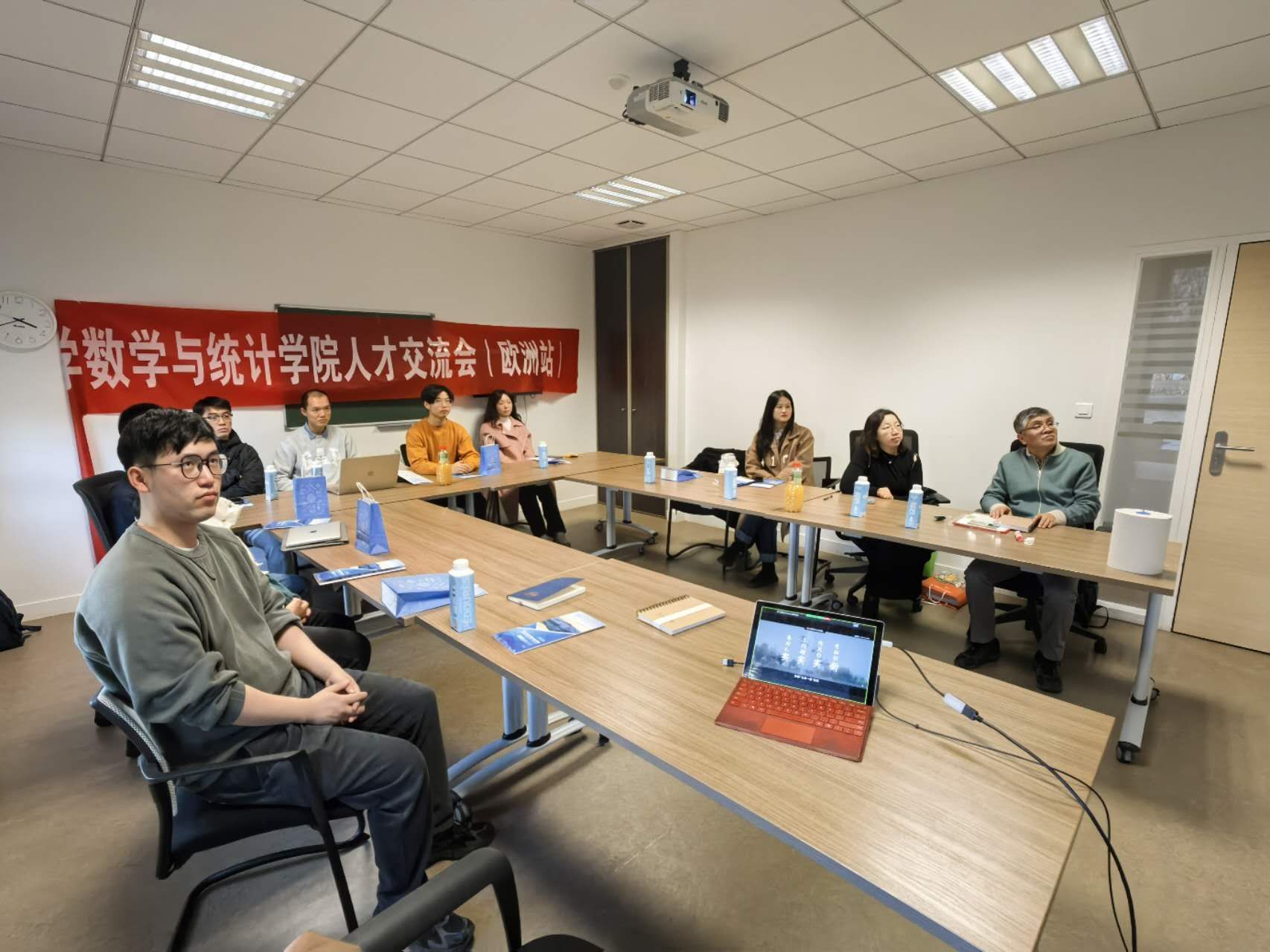 11月29日,韩国av 代表团组织法国贡比涅技术大学专场人才招聘会。招聘会共吸引了数学学科20余位青年学者关注咨询,近10余位学者现场参会交流。招聘会上,都琳教授向参会学者全面细致的介绍了学院科研、教学、国际交流与引才育才各项情况。与会学者积极回应,并就相关入职政策、后续发展提出问题。聂玉峰教授和肖曼玉教授就与会学者提出的关于专业、就业模式、待遇、后续发展等问题给予了细致专业的回答,并鼓励他们努力学好本领,将来能为国家多做贡献。会场气氛热烈非凡。