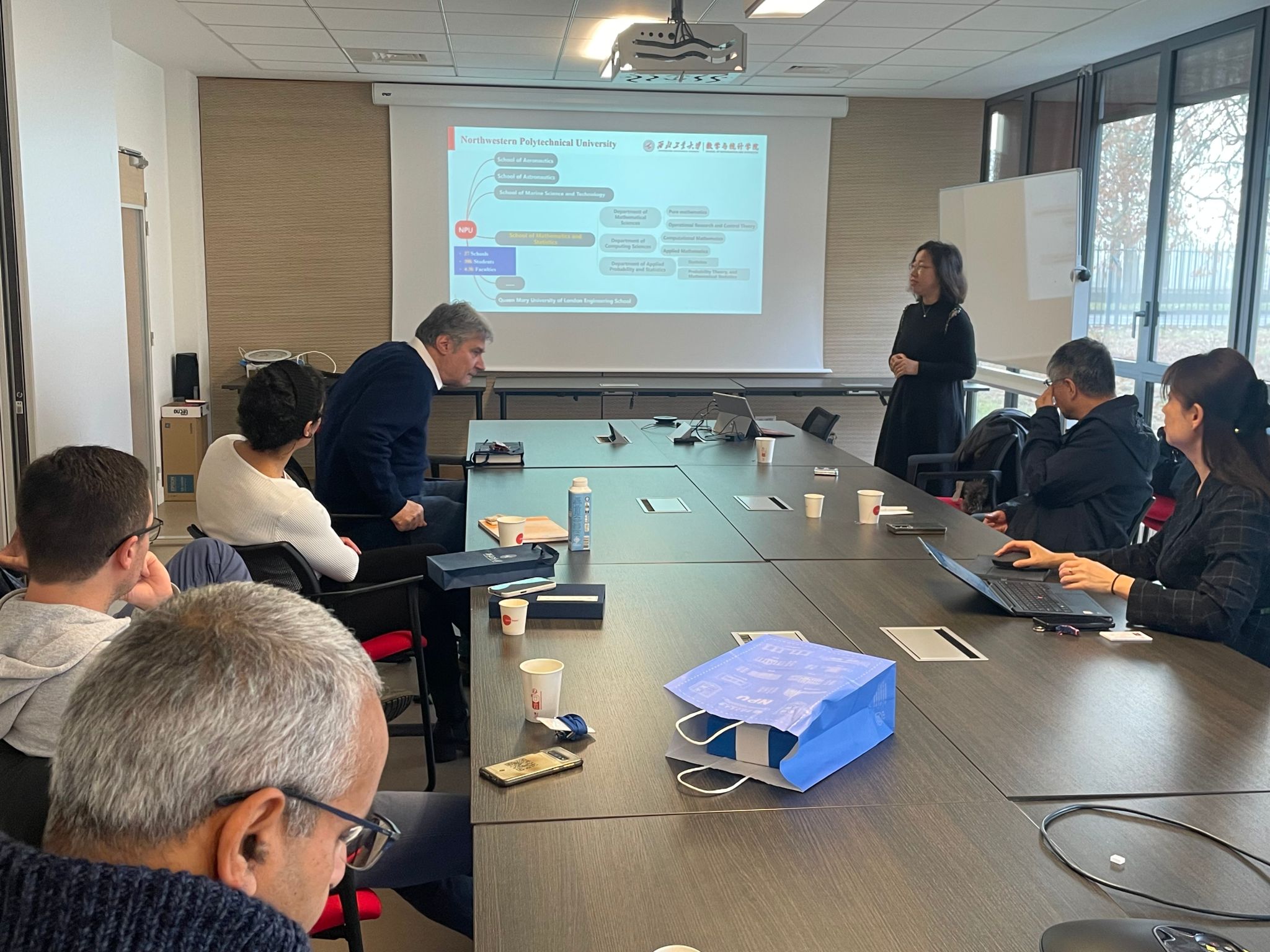 11月30日,经肖曼玉教授前期积极协调沟通,韩国av 代表团访问法国贡比涅技术大学数学所,洽谈两院合作事宜。对方出席人员包含数学所主任Salim Bouzebda教授、Faker Ben Belgacem教授、Nikolaos Limnios 教授以及Roverval实验室主任Piotr Breitkopf教授、Ludovic Cauvin教授。