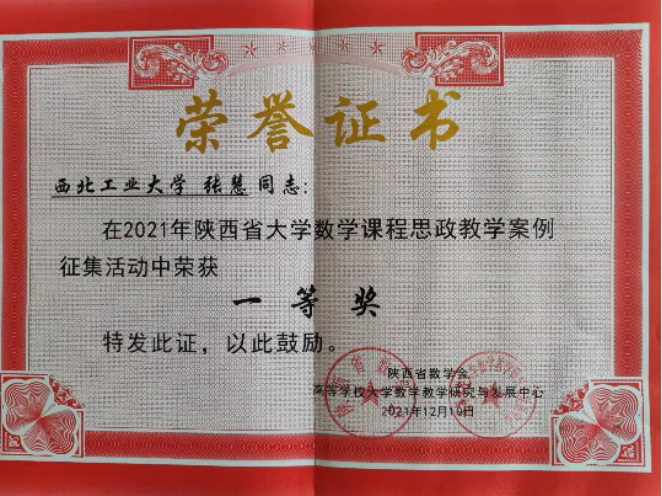 张慧老师分享了从无穷小量的概念、性质方面融入课程思政元素的教学案例,在训练学生数学思维和方法的基础上,提高学生的科学思维能力,培育学生的唯物史观、创新精神等,该案例在2021年陕西省大学数学课程思政教学案例征集活动中荣获一等奖。