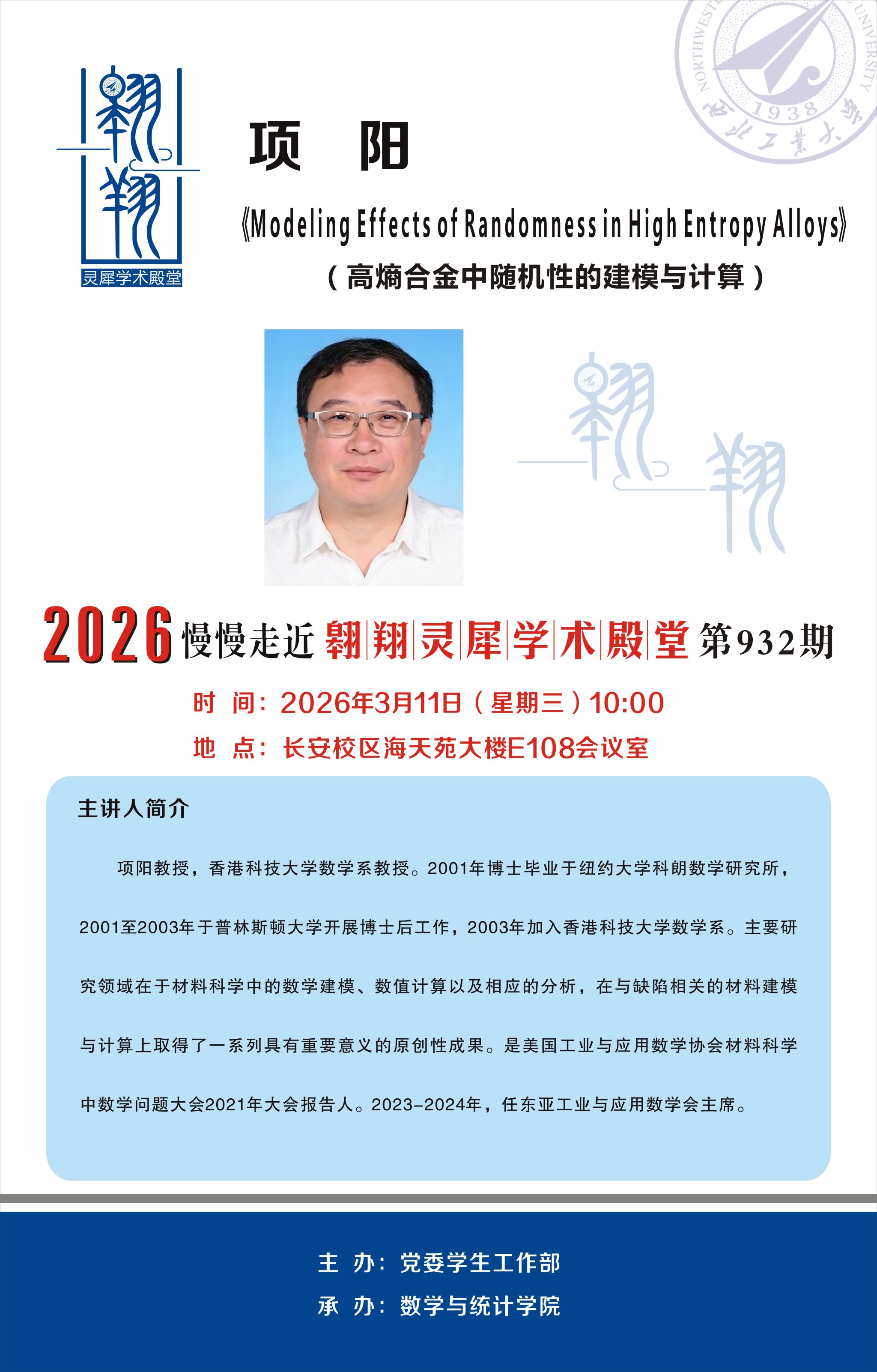 【翱翔灵犀学术殿堂第932期】Modeling Effects of Randomness in High Entropy Alloys
