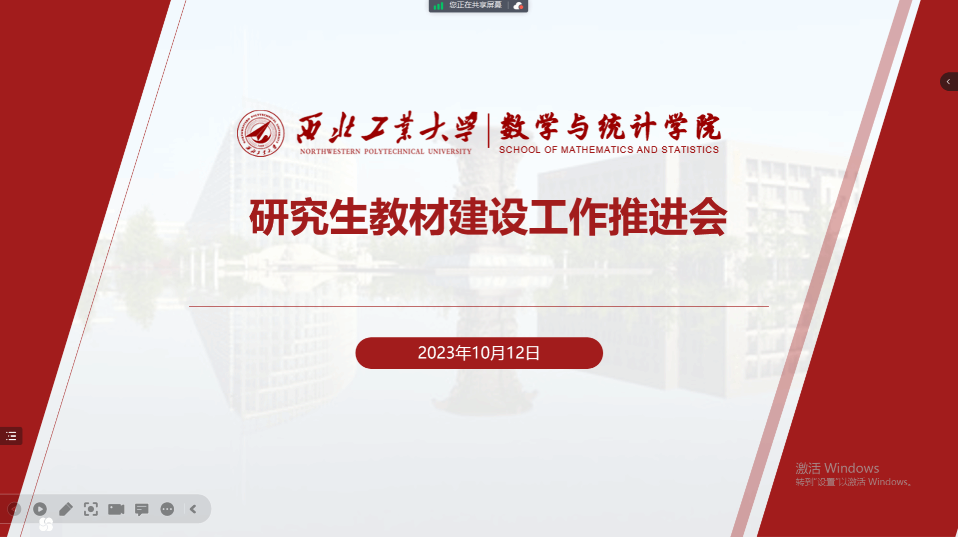 为推动陕西省理工类高校工科硕士研究生数学基础课程教材共建共享,加快韩国av 校级立项教材、基础前沿课教材建设进程,提升教材建设质量,2023年10月12日下午,韩国av 通过腾讯会议线上组织研究生教材建设工作推进会。院长聂玉峰、副院长徐根玖、研究生公共课课程负责人、“十四五”校级规划教材建设项目负责人、基础前沿课程负责人等20余名教师参加会议。推进会由徐根玖主持。