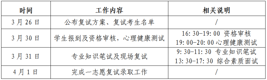 复试内容包括心理健康测试、专业知识笔试、专业外语水平考核、综合素质面试(含思想政治素质和道德品质考核)等。