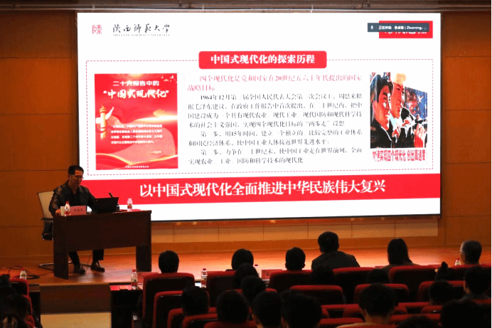 11月8日,数学与统计学院联合电子信息学院共同举办学习贯彻党的二十大精神专题党课,特邀陕西师范大学远程教育学院书记刘建军作了题为《以中国式现代化全面推进中华民族伟大复兴》的党课。数学与统计学院和电子信息学院理论学习中心组成员、师生党员代表、青年学习理论小组成员共200余人参加会议。会议由数学与统计学院党委书记王莉主持。