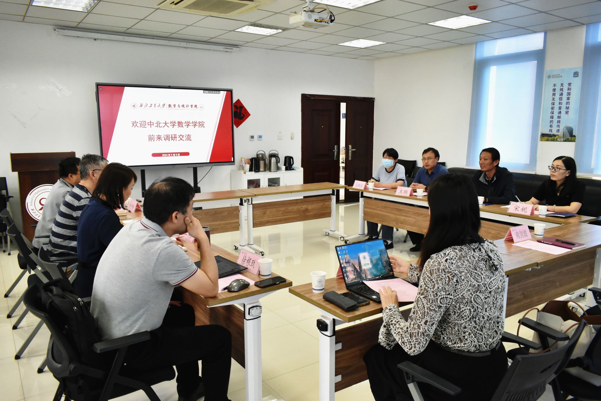 聂玉峰从学院历史沿革、师资概况、数学拔尖人才和“总师型”人才培养、科学研究、国际合作等方面做了重点介绍,王莉就学院近几年取得的党建成果分享了工作的开展思路和经验方法。薛亚奎介绍了中北大学数学学院发展历程、专业建设、师资状况、人才引进等方面的情况。双方围绕党建工作、数学学科建设、人才培养等方面进行了深入细致的交流。