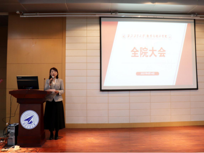 此次大会共有五个议程:徐根玖副院长汇报研究生培养及科学研究重点工作、都琳副院长汇报本科培养重点工作、张莹副书记汇报学生工作重点工作、王莉副书记(主持工作)汇报《数学与统计学院教师公益服务工作量管理办法(试行)》、聂玉峰院长总结发言。
