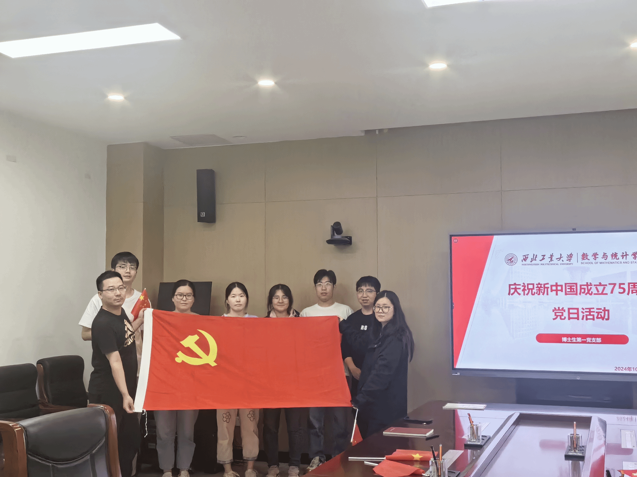 为庆祝中华人民共和国成立75周年,引导支部党员心怀国之大者,坚定理想信念,10月10日下午,博士生第一党支部召开全体党员大会,学习了李言荣同志代表中国共产党西北工业大学第十三届委员会所作的重要报告——《为党育英才,为国铸重剑,奋力谱写中国特色世界一流大学建设新篇章》,并组织开展了“传承红色基因,凝聚奋进力量”主题党日活动。会议由党支部书记陈彦甫主持,支部全体党员线上线下相结合参与了本次活动。