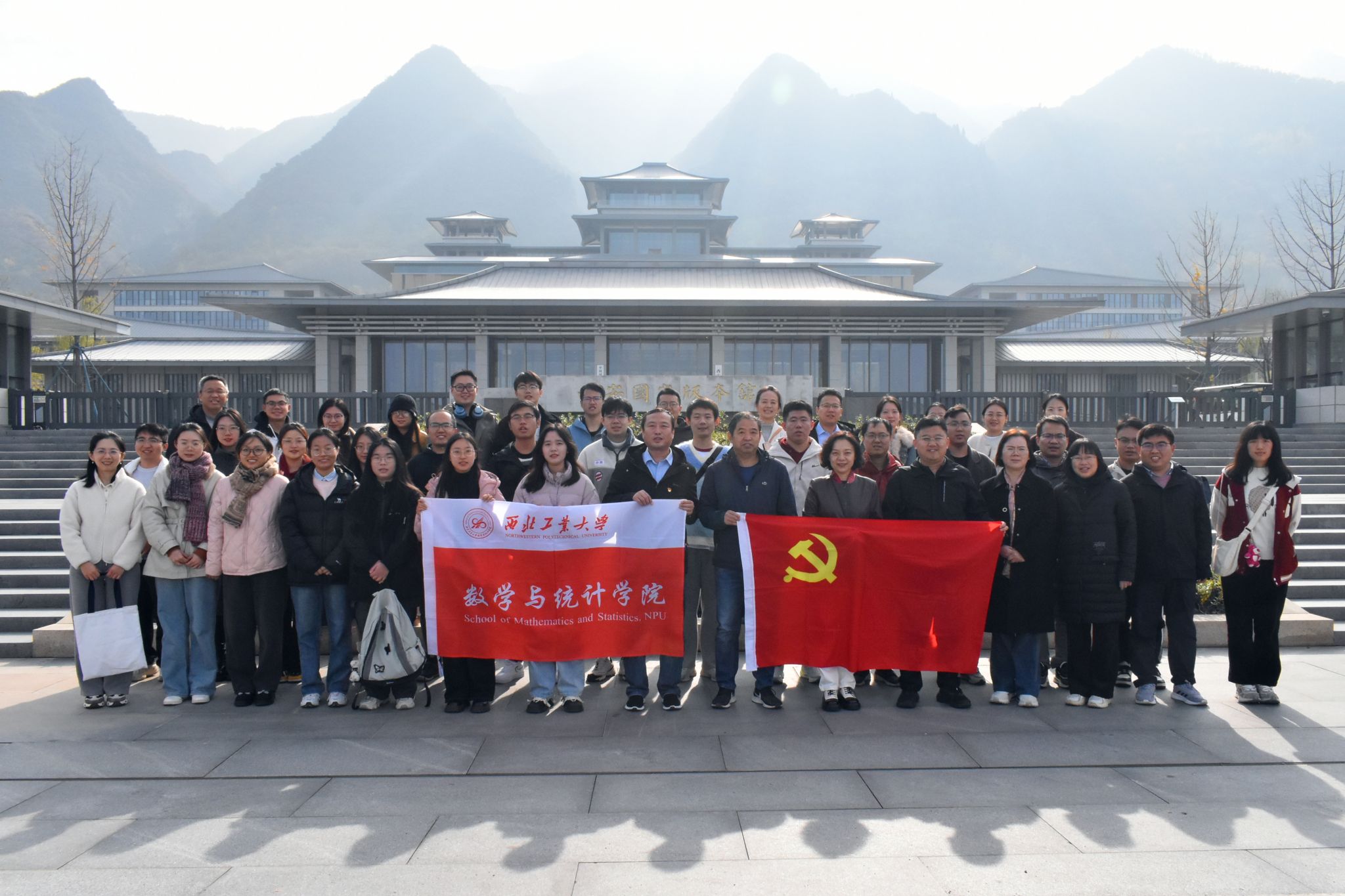为学习贯彻党的二十届三中全会精神,深入理解习近平文化思想,落实我校第十四次党代会精神,激励师生增强文化自觉,坚定文化自信。11月21日,数学与统计学院党委委员、院长助理、团委书记、党员代表、青年理论学习小组成员、学生代表等共49人前往中国国家版本馆西安分馆(文济阁)参观学习,并开展导师培训。