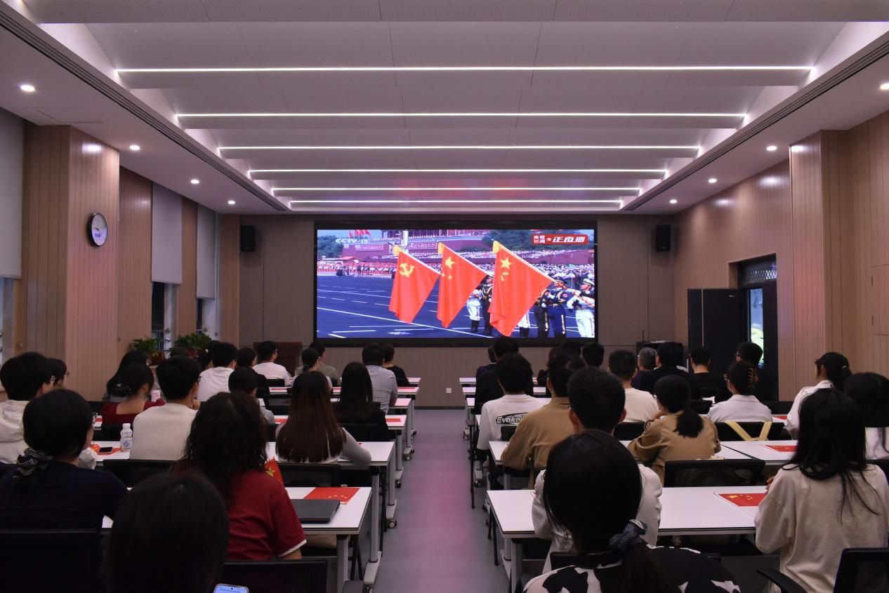 9月3日上午,数学与统计学院党委组织党员代表、师生代表分别在海天苑大楼E108、E207会议室和教学西楼D座203、204教室集中观看纪念中国人民抗日战争暨世界反法西斯战争胜利80周年阅兵仪式实况直播。