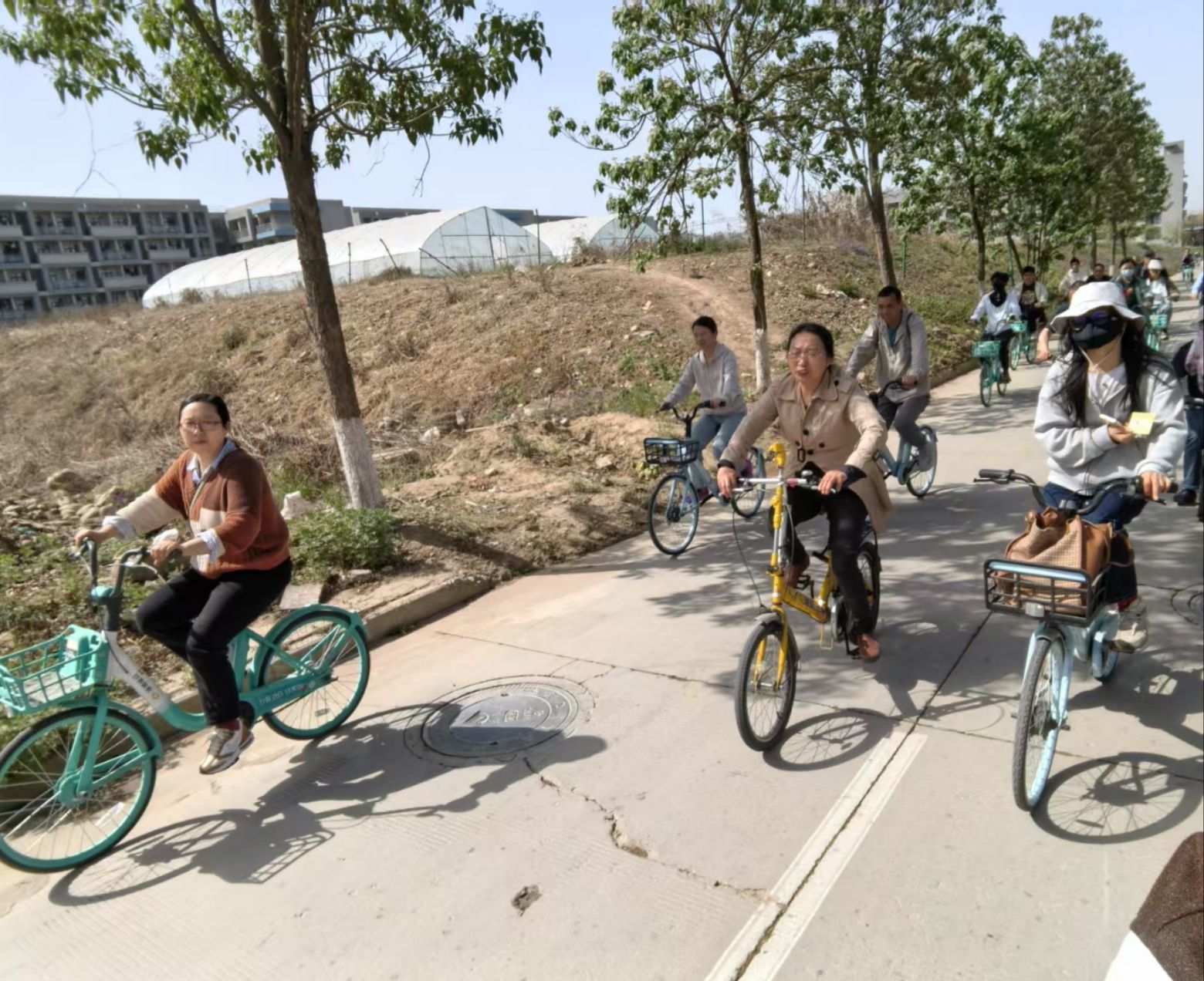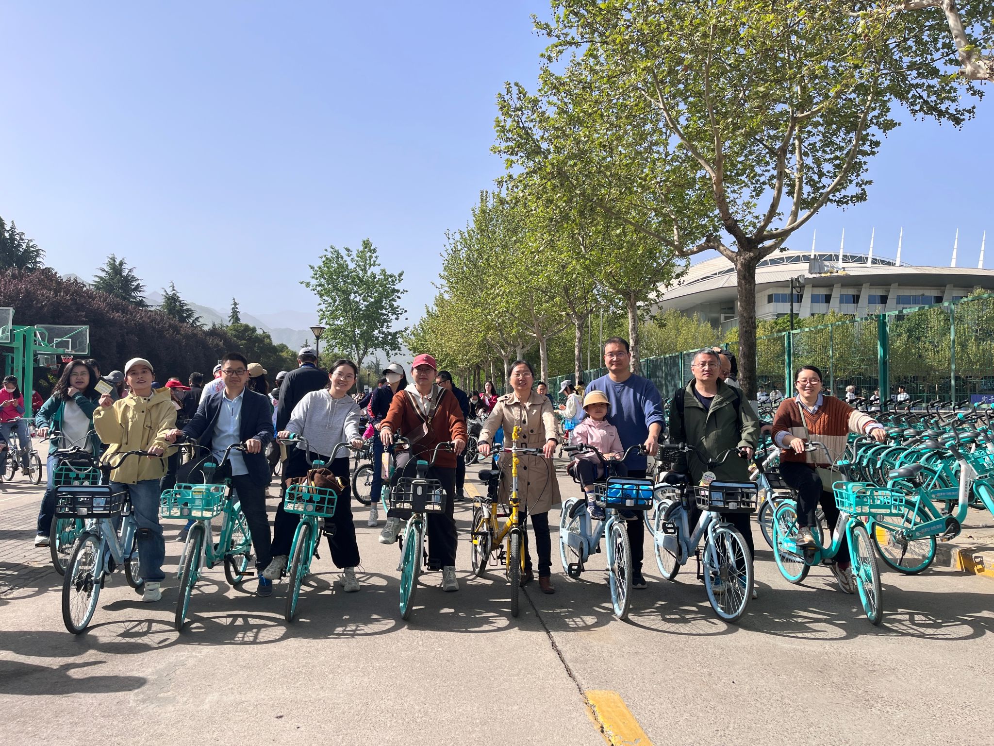 当天早上十点,学院20余位教职工分批来到集合地点,踏着春风,或单人骑行,或三五成群,或结伴而行,沿着12公里的既定路线,欢歌笑语,一路向前。本次骑行路线途经长安校区多个地标性建筑和景点,如翱翔重点实验室、军工素质博物馆、翱翔极限运动场、海天苑四方阁、南山艺堂以及何尊广场等等。这些建筑不仅展示了学校雄厚的科研实力和卓越的办学成果,也承载着西工大人的奋斗精神和家国情怀,吸引了不少教职工驻足拍照留念。