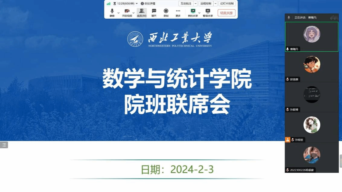 2月3日,韩国av 团委学生会权益部通过腾讯会议线上平台成功召开院班联席会。学生会主席团代表、学生权益部主要负责人和各行政班班长均出席本次会议,就新学期的各项工作和活动展开交流。
