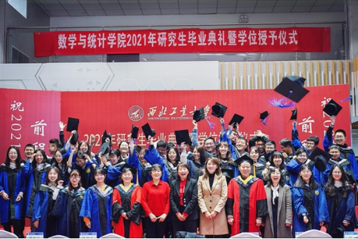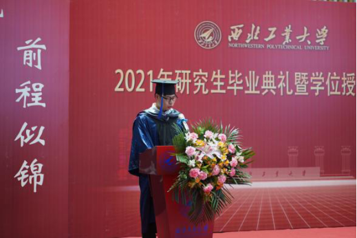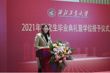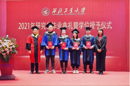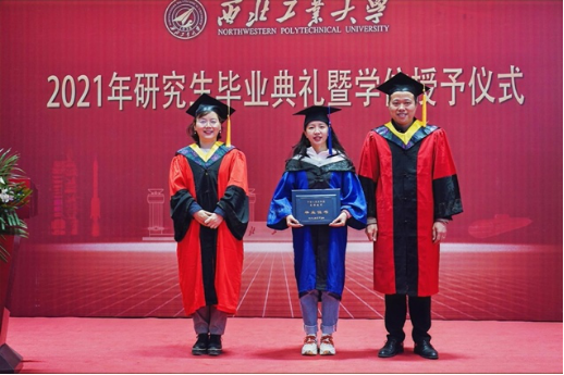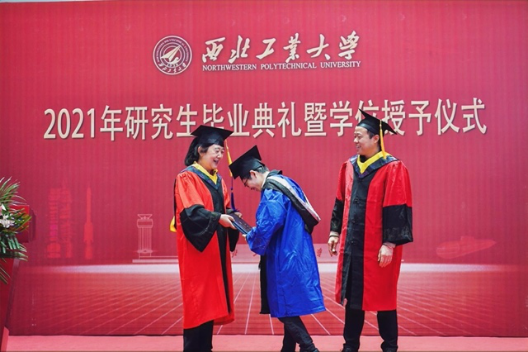 在庄严雄壮的国歌声中,典礼拉开帷幕。副院长徐根玖宣读数学与统计学院获得西北工业大学2021年研究生“优秀毕业生”荣誉称号的学生名单。王莉和徐根玖为优秀毕业生代表颁发荣誉证书,并合影留念。