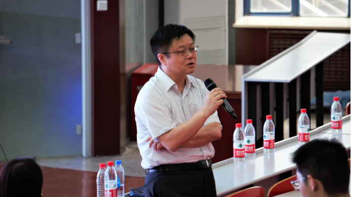 5月26日14:00,2021届本科毕业生“工大最后一课”在教西D100举行。校长助理兼学校办公室主任王宇波担任主讲嘉宾,带来了一场题为“从三位校友的救国、报国、强国之路看'价值塑造'在西工大人才培养中的核心作用”的精彩课程。电子信息学院党委副书记彭亮,数学与统计学院党委副书记张莹,物理科学与技术学院党委副书记王洲航,化学与化工学院党委副书记王兆旭,马克思主义学院党委副书记李刚,以及长安校区电子信息学院、数学与统计学院、物理科学与技术学院、化学与化工学院、公共管理与关系学院、马克思主义学院2021届本科毕业生及部分研究生共300人聆听了本次课程。课程由数学与统计学院党委副书记(主持工作)王莉主持。