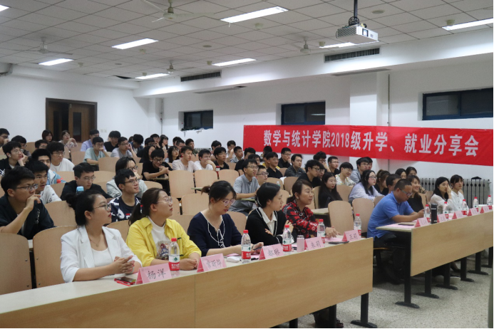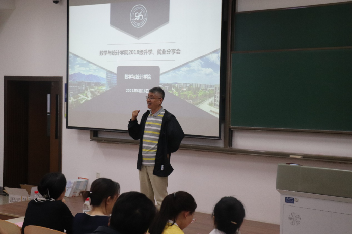 2021年6月16日,数学与统计学院2018级本科生升学、就业分享会于教学西楼C406顺利举办。出席本次会议的有数学与统计学院院长聂玉峰、党委副书记(主持工作)王莉、党委副书记张莹、副院长都琳、应用概率系主任王亮、计算科学系主任王晓龙,学生职业发展指导服务中心主管朱莉,2018级本科生辅导员戴卓、研究生教学秘书杨洋、本科生教学秘书常昕烨等,数学与统计学院2018级全体本科生参加了此次大会。