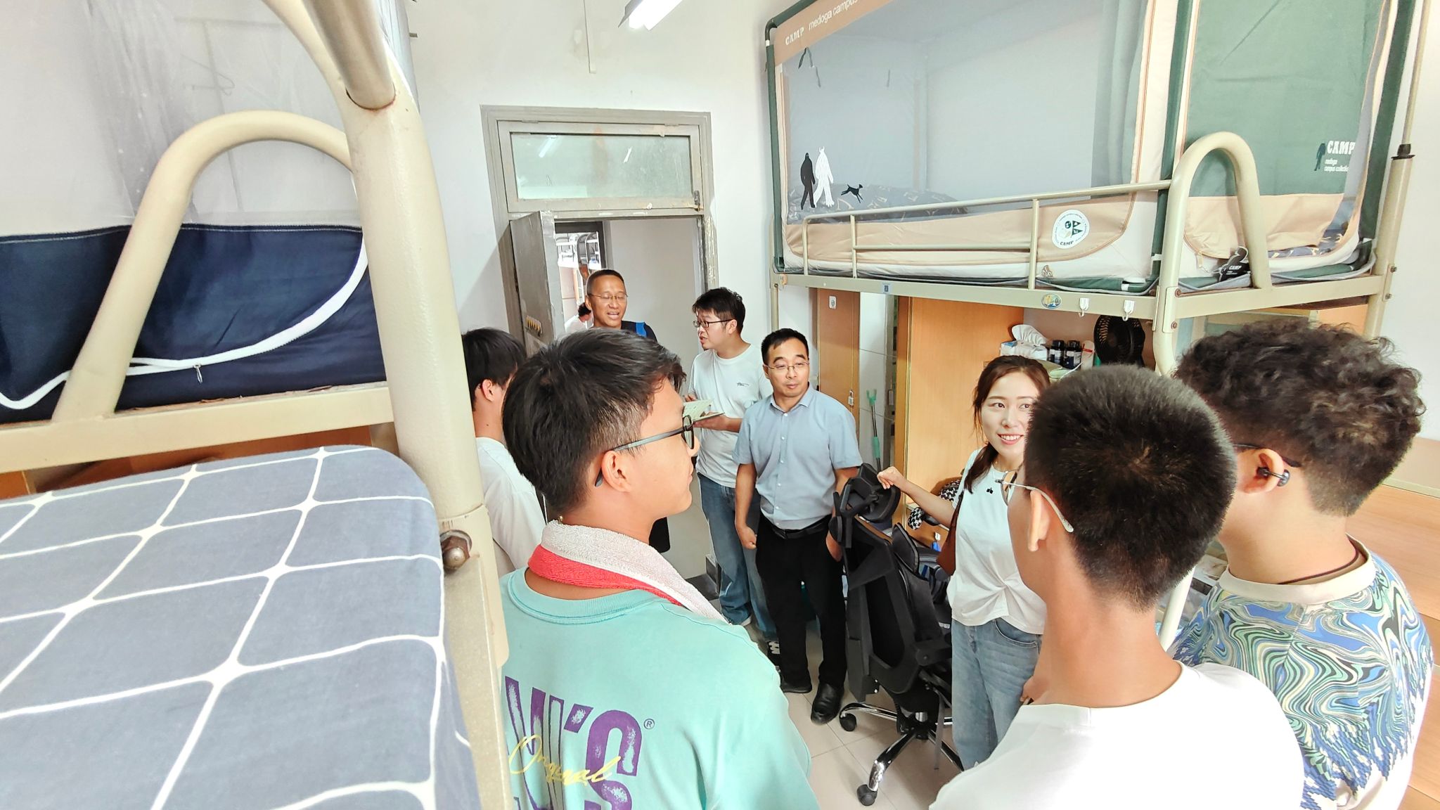 9月2日,党委书记王莉、党委副书记张莹、副院长郭千桥与全体新生班主任、年级辅导员、兼职班主任等分头进入长安校区星天苑B座与C座学生宿舍,慰问看望全体新生,通过谈话交流进一步掌握思想动态,解决新生疑惑。期间,副院长郭千桥还就新生在选课方面存在的问题进行了现场解答和指导,确保相关工作有条不紊,顺利开展。