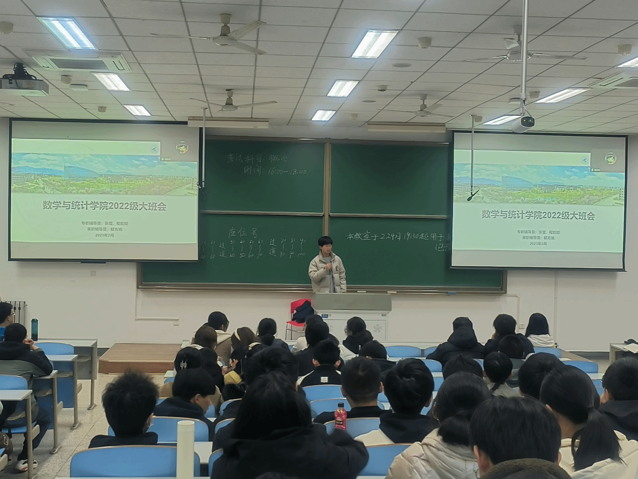 2月24日晚七点半,数学与统计学院2022级春季学期第一次大班会顺利开展。参加本次会议的有数学与统计学院党委副书记张莹、22级本科生兼职辅导员郗方旭以及22级全体学生,会议由辅导员程姣姣主持。