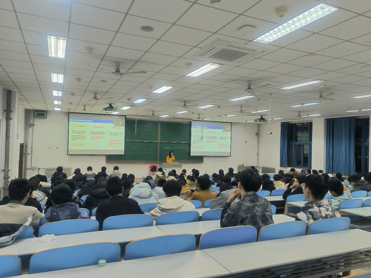 会议伊始,由张莹副书记发言。张老师着眼于同学们长远的人生发展,强调了做好大学规划的重要性。张老师表示,希望同学们提前做好清晰的规划,抓住发展时机。同时,张老师就同学们的专业确认问题提出看法与建议,希望同学们以充分的准备工作为出发点,以扎实的基本功为立足点,以多方面发展为闪光点,做好自身的职业生涯规划,学院和老师们会为大家保驾护航。在日常生活方面,张老师鼓励同学们主动与他人沟通交流,积极克服心理、学习等各方面困难,同时注意个人安全,谨防诈骗。最后,张老师说道,自律是一切的前提,希望同学们都能养成良好的习惯。