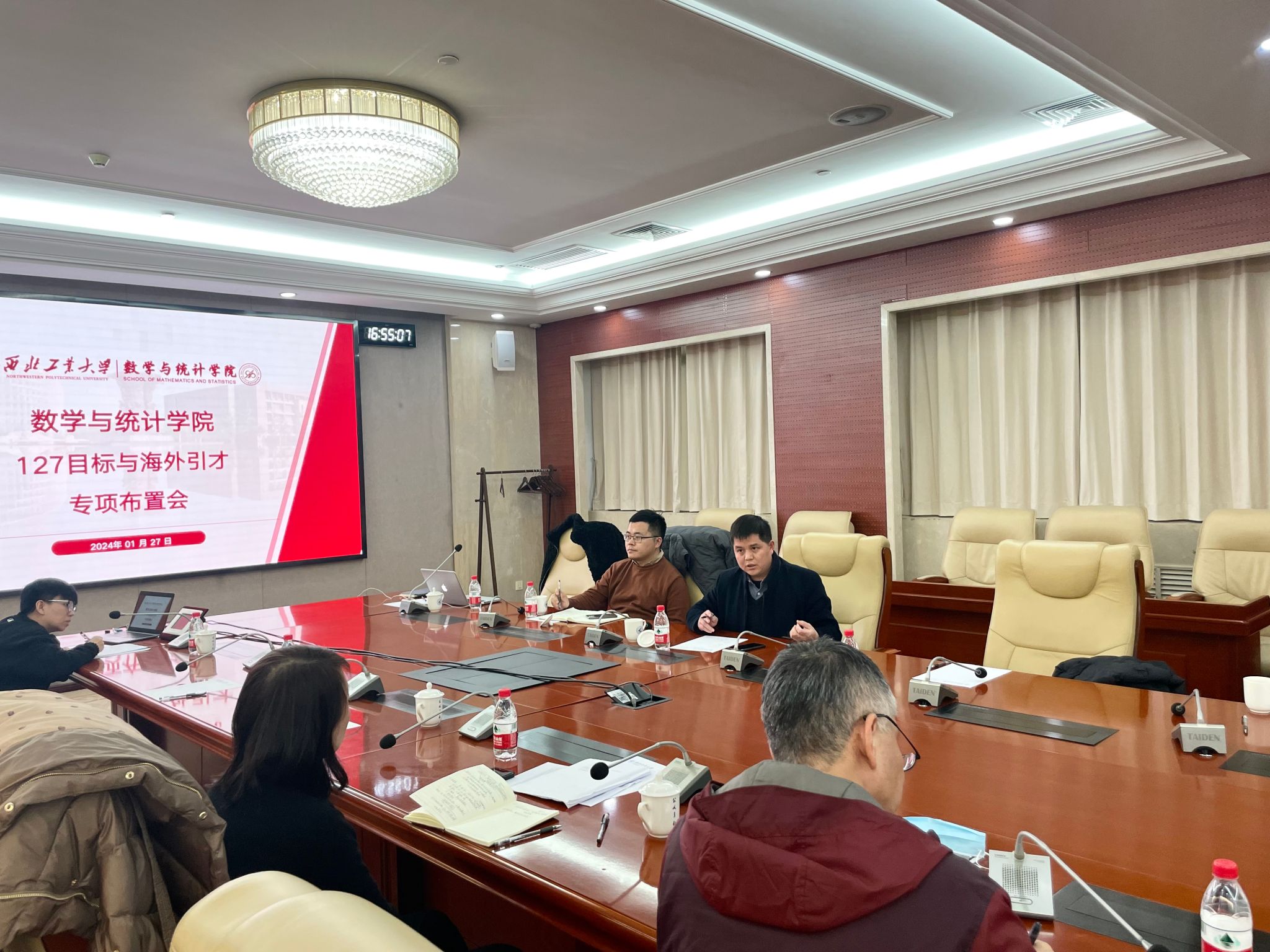 为促进学院人才工作高质量发展,推动高层次人才“外引内培”工作落实落地,助力全院教职工锚定学校“127”目标,1月27日下午,数学与统计学院召开127目标暨海外引才专项布置会。院长聂玉峰、党委书记王莉、副院长都琳、各系主任及学院科研团队负责人等20余位教师,参与了此次会议。会议由聂玉峰主持。