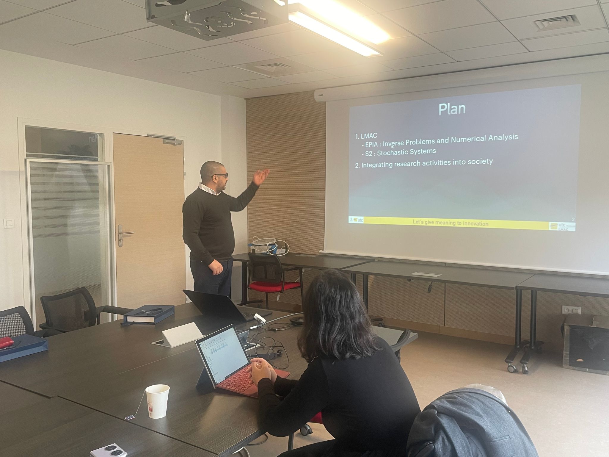 11月30日,经肖曼玉教授前期积极协调沟通,数学与统计学院代表团访问法国贡比涅技术大学数学所,洽谈两院合作事宜。对方出席人员包含数学所主任Salim Bouzebda教授、Faker Ben Belgacem教授、Nikolaos Limnios 教授以及Roverval实验室主任Piotr Breitkopf教授、Ludovic Cauvin教授。