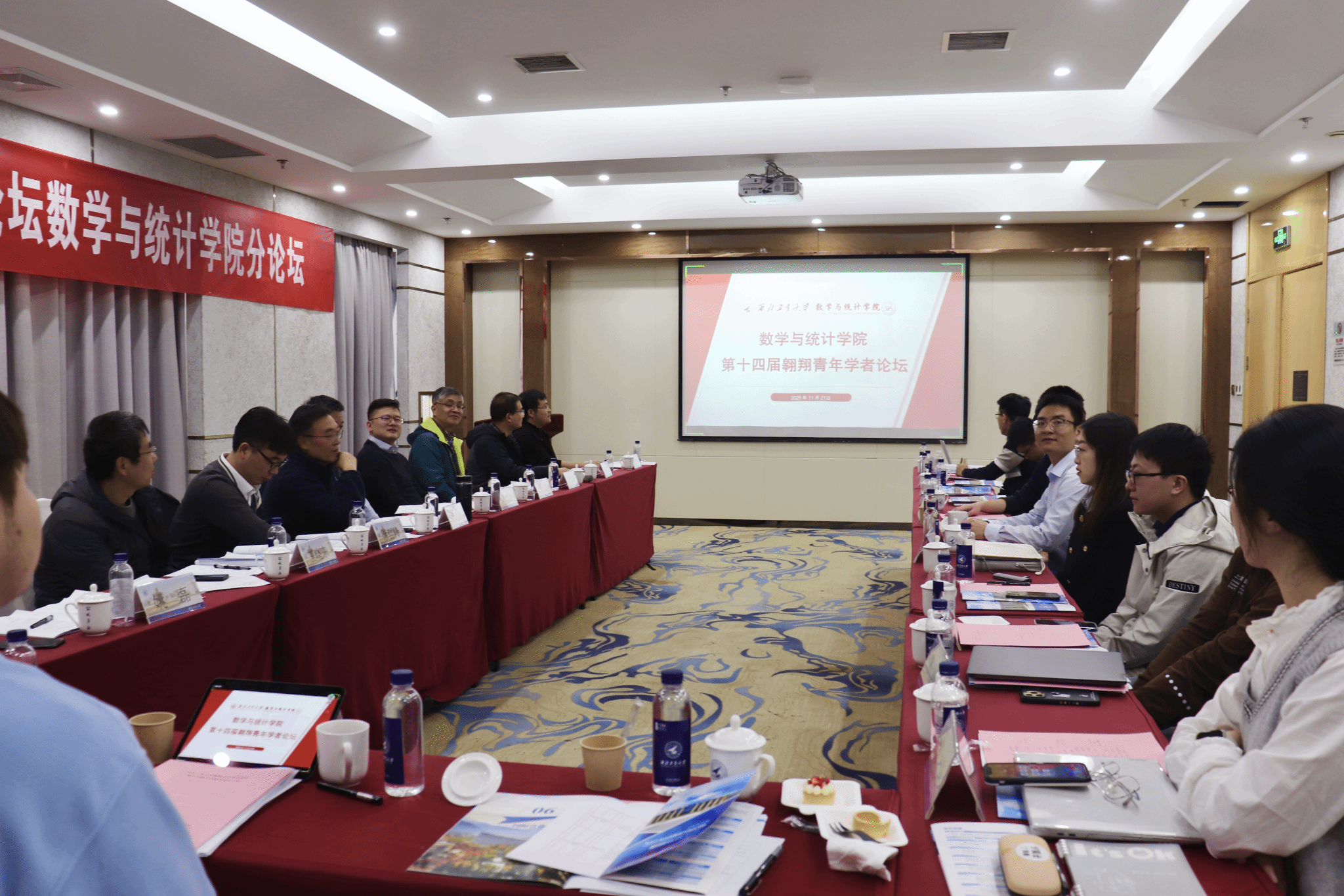 为切实贯彻和深入实施新时代人才强校战略,加快实现学校“天下工大、世界三航”远景目标,持续推进数学学科建设与人才队伍高质量发展,11月21日,西北工业大学翱翔青年学者论坛数学与统计学院分论坛以“线下+线上”融合模式正式拉开帷幕。通过平台简历收集、学者对接、线下参会等一系列筹备工作,此次论坛共邀请到来自瑞典皇家理工学院、德国波兹坦大学、日本九州大学、加拿大约克大学等海内外知名学府的13位优秀青年学者共聚云端、共话学术、共谋发展。学院院长聂玉峰、副院长都琳、副院长徐根玖、院长助理王晓龙、院内外资深教授及学生代表参会,会议由聂玉峰和徐根玖共同主持。