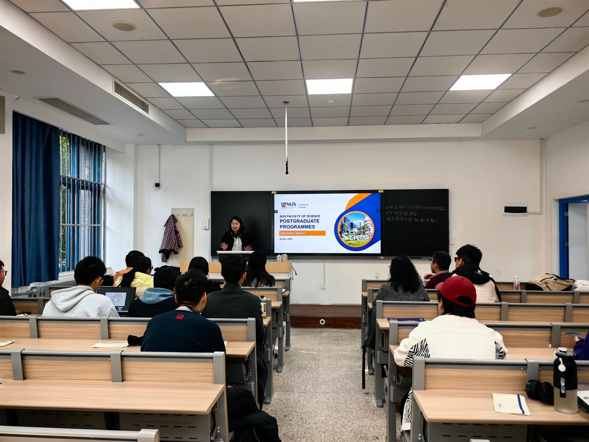 为搭建优质国际化升学平台,助力学子对接世界顶尖教育资源,12 月 4 日 下午,数学与统计学院于长安校区教西成功举办 “九章越洋,学贯中外”世界名校宣讲会。新加坡国立大学(2026QS第8)、英国布里斯托大学(2026QS第51)两大名校代表受邀分享本硕博项目。学院党委副书记张莹教授、国际交流与合作办公室主任肖曼玉教授、外事秘书李卓榕,新加坡国立大学理学院助理院长王飞教授、中方招生负责人 Joanna 老师,英国布里斯托大学 3+1 本硕双学位项目中方负责人王秋红老师及20余位本校学生共同出席活动。宣讲会由李卓榕老师主持。