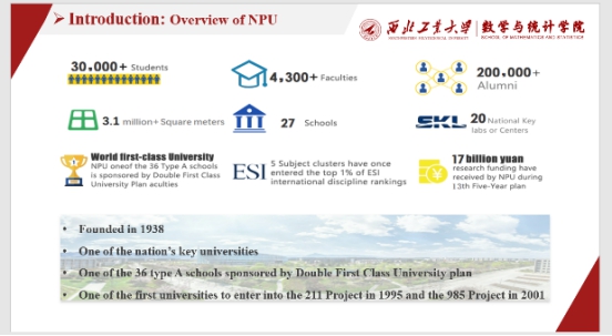 会上,数统学院首先详细介绍了西北工业大学基本概况,数学与统计学院结构设置、研究方向、专业设置、科研情况、前两年课程培养方案以及国际化人才培养合作需求模式等情况。接下来,英方针对学生交流项目的合作模式发表了意见,双方重点探讨了开展2+2双本、2+1+1双本单硕以及1+1+1双硕项目的可能性。纽卡斯尔大学数学统计和物理学院主任LeeFawcett以及东亚区招生官XeniaXu就项目的开展提供了可行性建议。从学校的角度,国际合作处副处长陈俊老师发表讲话,对两校的合作给予了肯定和支持,并对纽卡斯尔大学出席本次线上洽谈会的外方老师表示衷心的感谢。