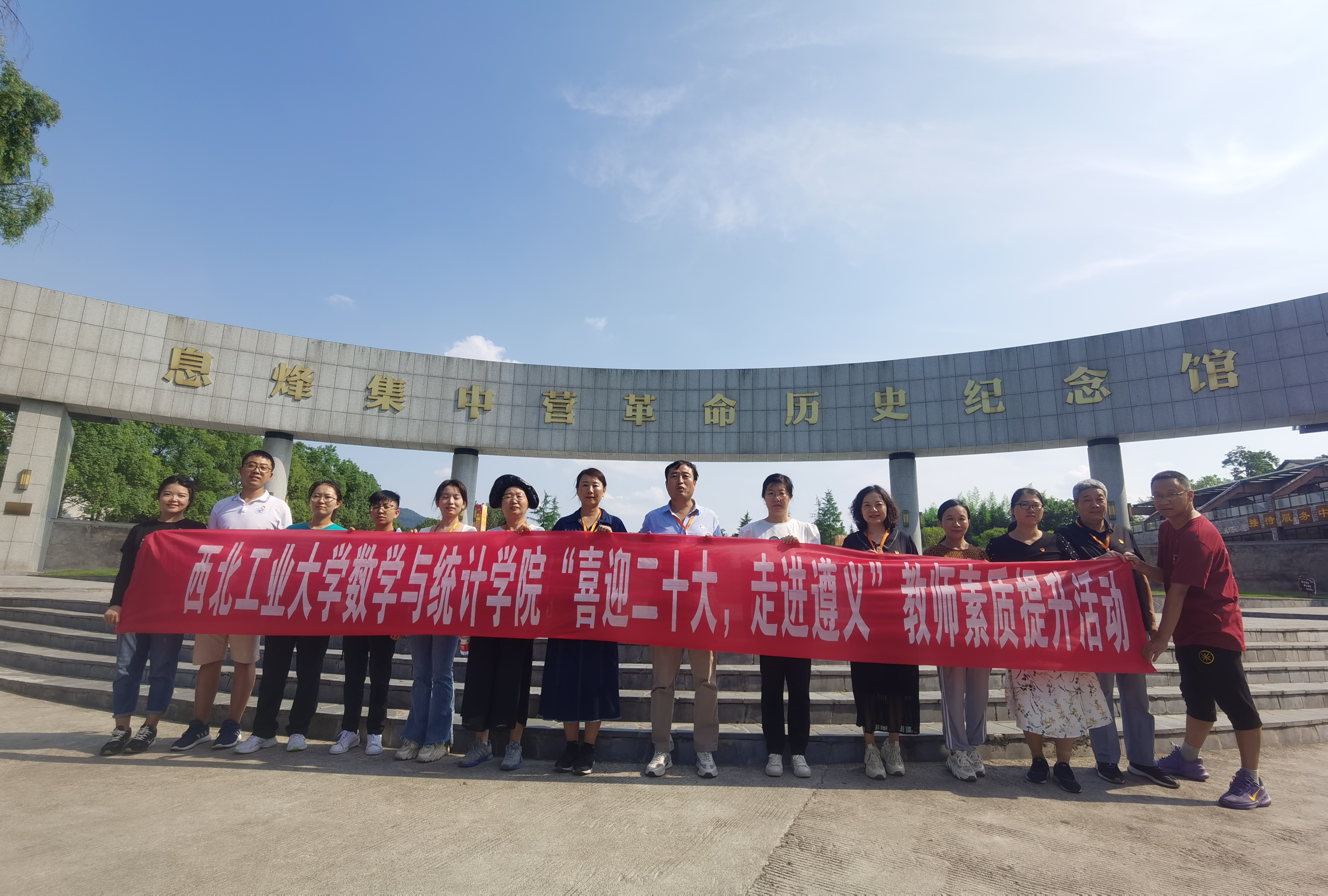 为喜迎党的二十大,进一步深化党史学习教育,感受遵义红色文化,2022年7月30日至8月3日,数学与统计学院14名教工党员在党委书记王莉同志带领下,赴贵州遵义开展教师素质提升活动。