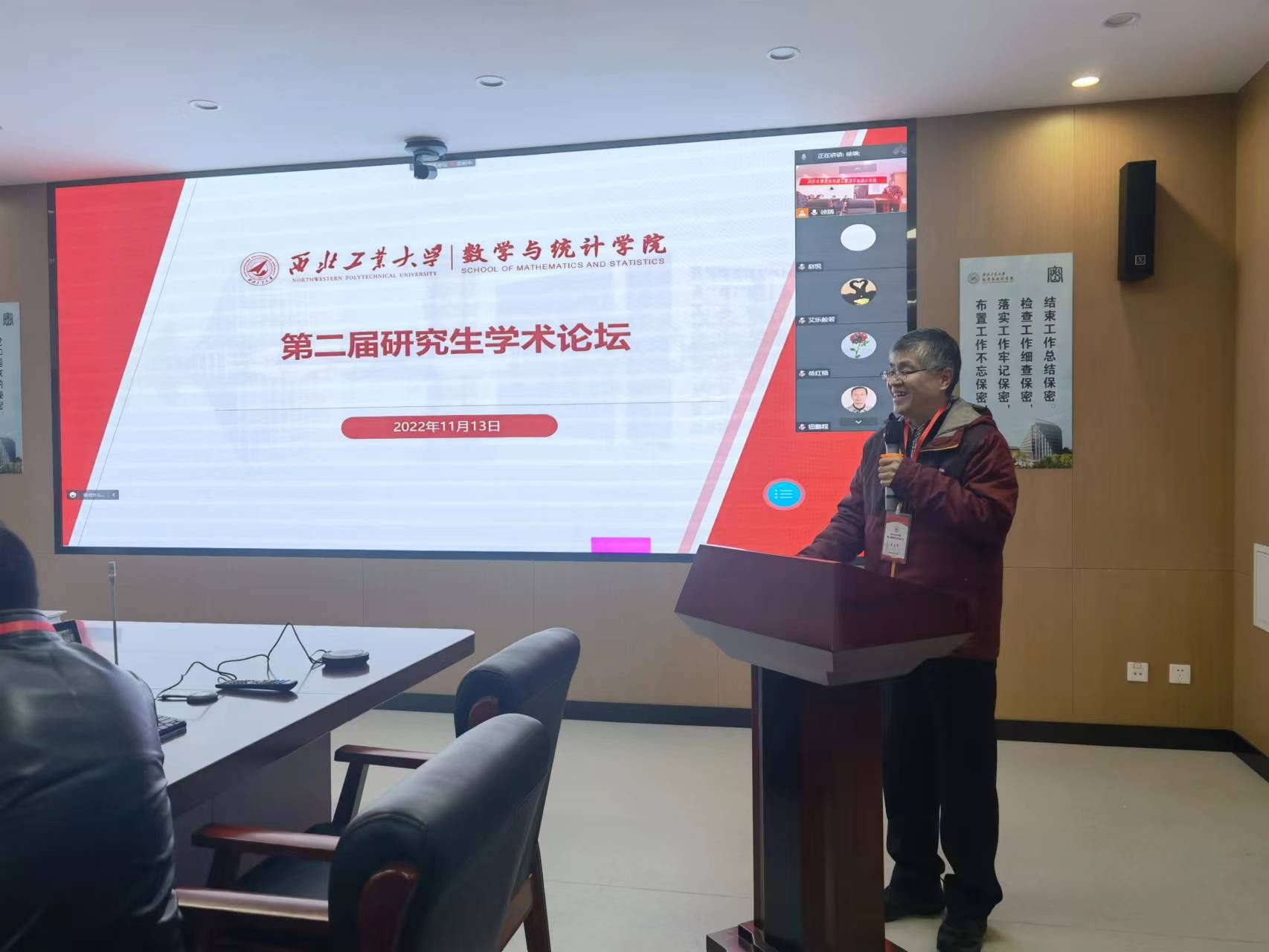 为进一步落实数学学科“双一流”建设,深入贯彻落实学校《一流研究生人才培养行动计划》,营造研究生学术创新氛围,2022年11月13日,数学与统计学院在西北工业大学长安校区召开第二届研究生学术论坛。根据疫情防控相关要求,本次论坛采取分设理学楼A201、A214、A315三个会场,线上线下结合的方式举行。党委书记王莉、院长聂玉峰、副院长徐根玖、副院长都琳以及二级学科负责人、青年教师代表、各年级研究生、其他高校师生等共230余人分别通过线上线下的形式参加了本次论坛,论坛由副院长徐根玖主持。