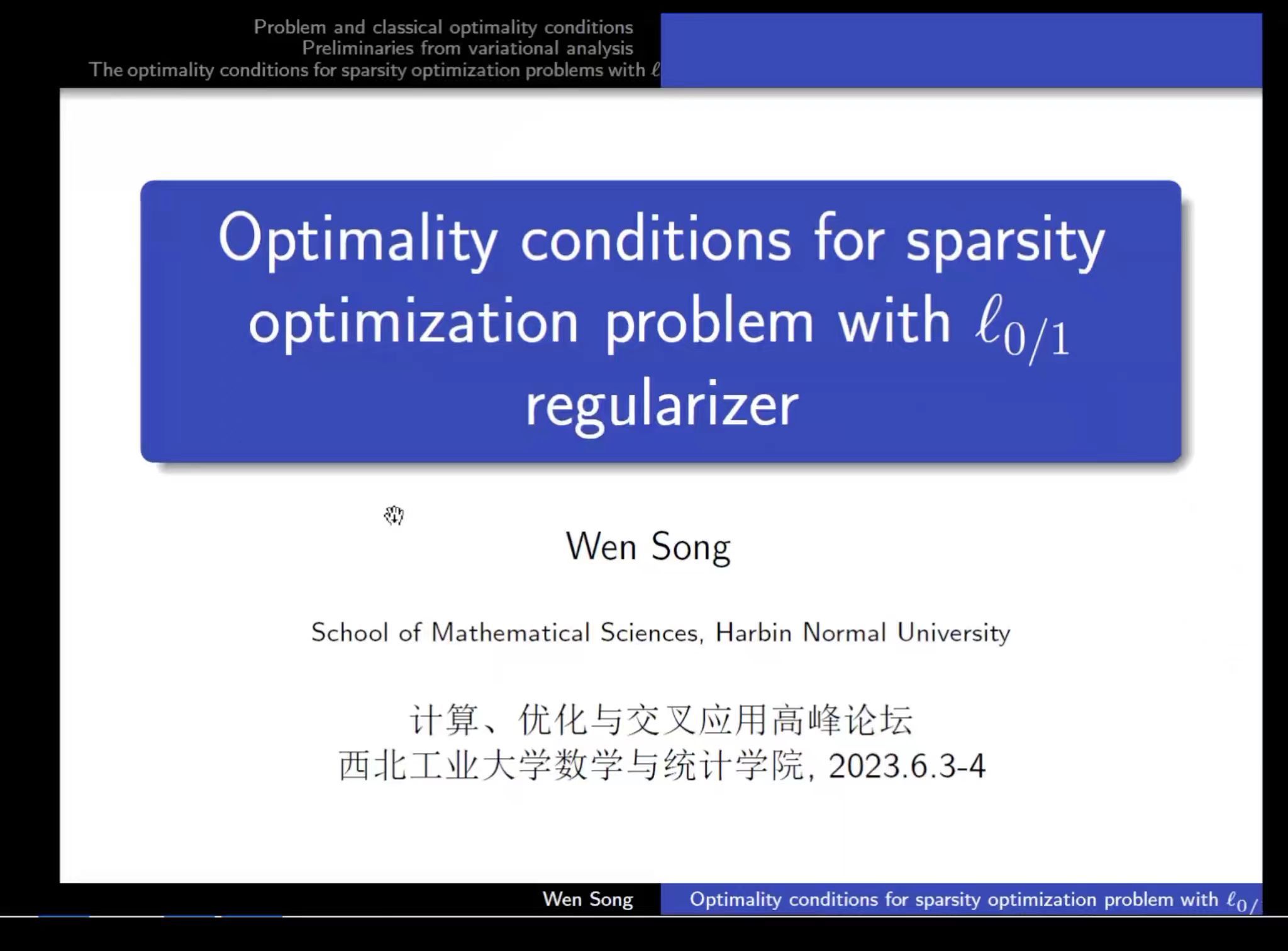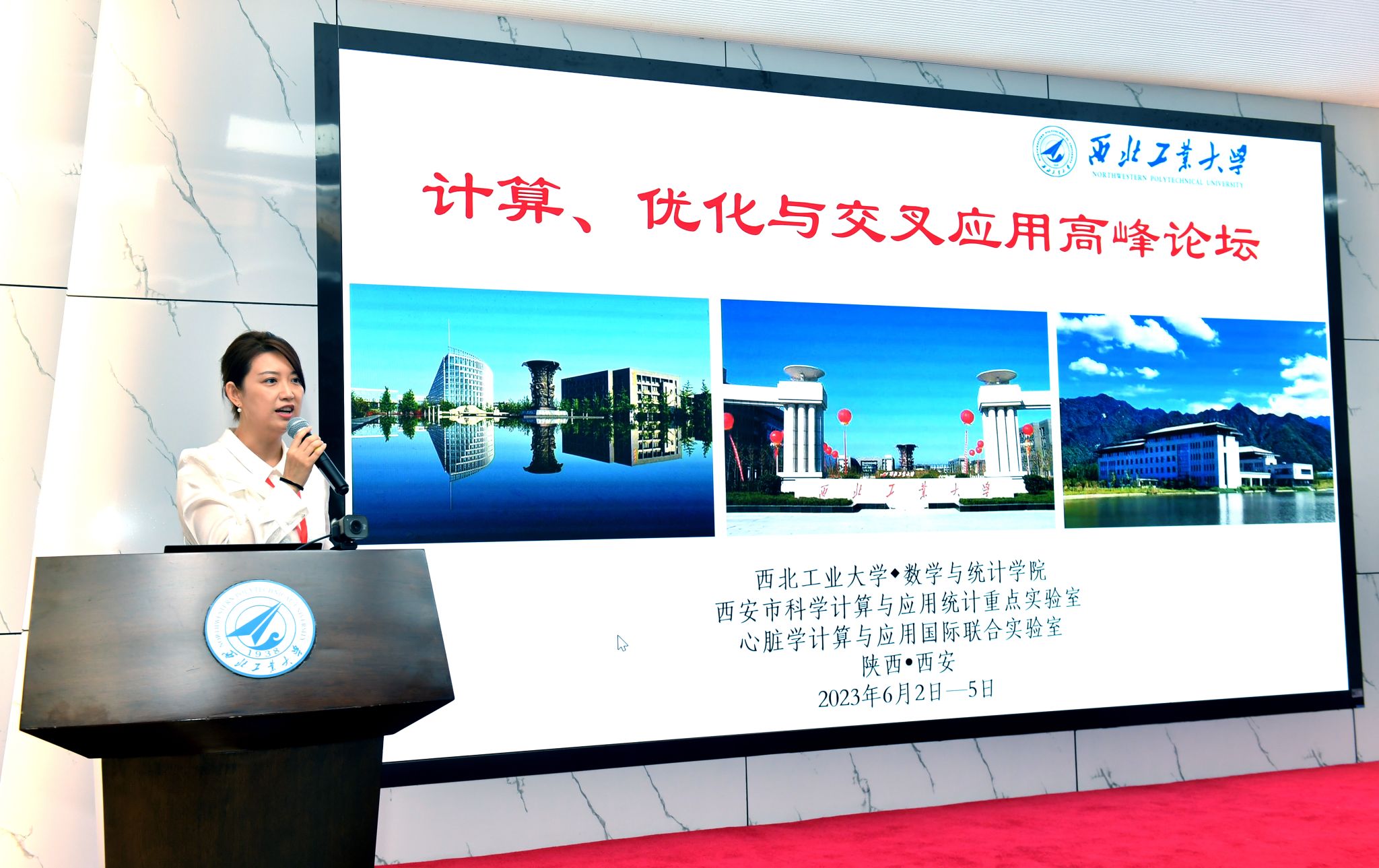 2023年6月2日至6月5日,西北工业大学数学与统计学院“计算、优化与交叉应用高峰论坛”在友谊校区东会议室成功举办。此次研讨会共有来自全国40余所高校和科研院所的近200名专家通过线下和线上的方式参加。