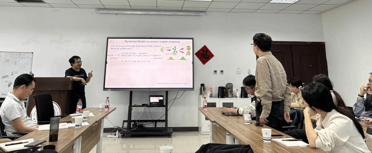2024年4月22日,数学与统计学院第6期“九章学术沙龙”成功举办。此次沙龙邀请了北京大学周沛劼助理教授作了题目为“Dynamical system approaches for single-cell transcriptomics data analysis”的学术报告,30余位师生参与并讨论,本次报告由裴斌教授主持。