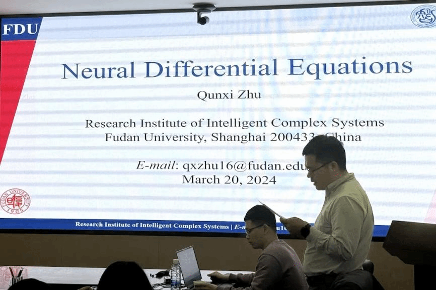 朱群喜从神经常微分方程的基本概念入手,详细介绍了其背景、机理、算法,应用及其变体和在学术界与工业界的研究现状与挑战。神经常微分方程作为一种新兴的机器学习方法,其灵感来源于传统微分方程理论。通过将神经网络的隐藏层与微分方程的离散化形式联系起来,为解决复杂系统预测和图像分类问题提供了一种全新的视角。神经常微分方程在多个领域显示出了其强大的能力,尤其是在处理时间序列数据、图像识别和生成任务等方面。最后,朱群喜介绍了他所在的实验室——复旦大学复杂系统基础理论与关键技术实验室在神经微分方程领域所取得的一些最新研究成果。