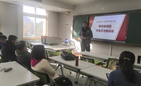 为全面掌握我校强基计划数学类培养方案的执行情况,总结教育教学过程中的实践经验,发现学生培养中存在的问题和不足,优化调整后续培养计划和教学活动,2020年12月23日上午数学与统计学院在教东B211教室举办了2020-2021学年秋学期“数学强基班”师生交流座谈会。