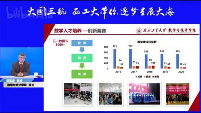 为进一步做好学校招生工作,应学校招生办公室邀请,2022年3月30日20:00,数学与统计学院院长聂玉峰教授做客《大国三航 西工大带你逐梦星辰大海》院长直播间,做了题为《走近数学 “强基”工大》的报告。本次报告在招办B站进行了现场直播,共有5000余人通过相关平台在线观看了此次报告。