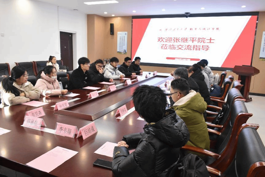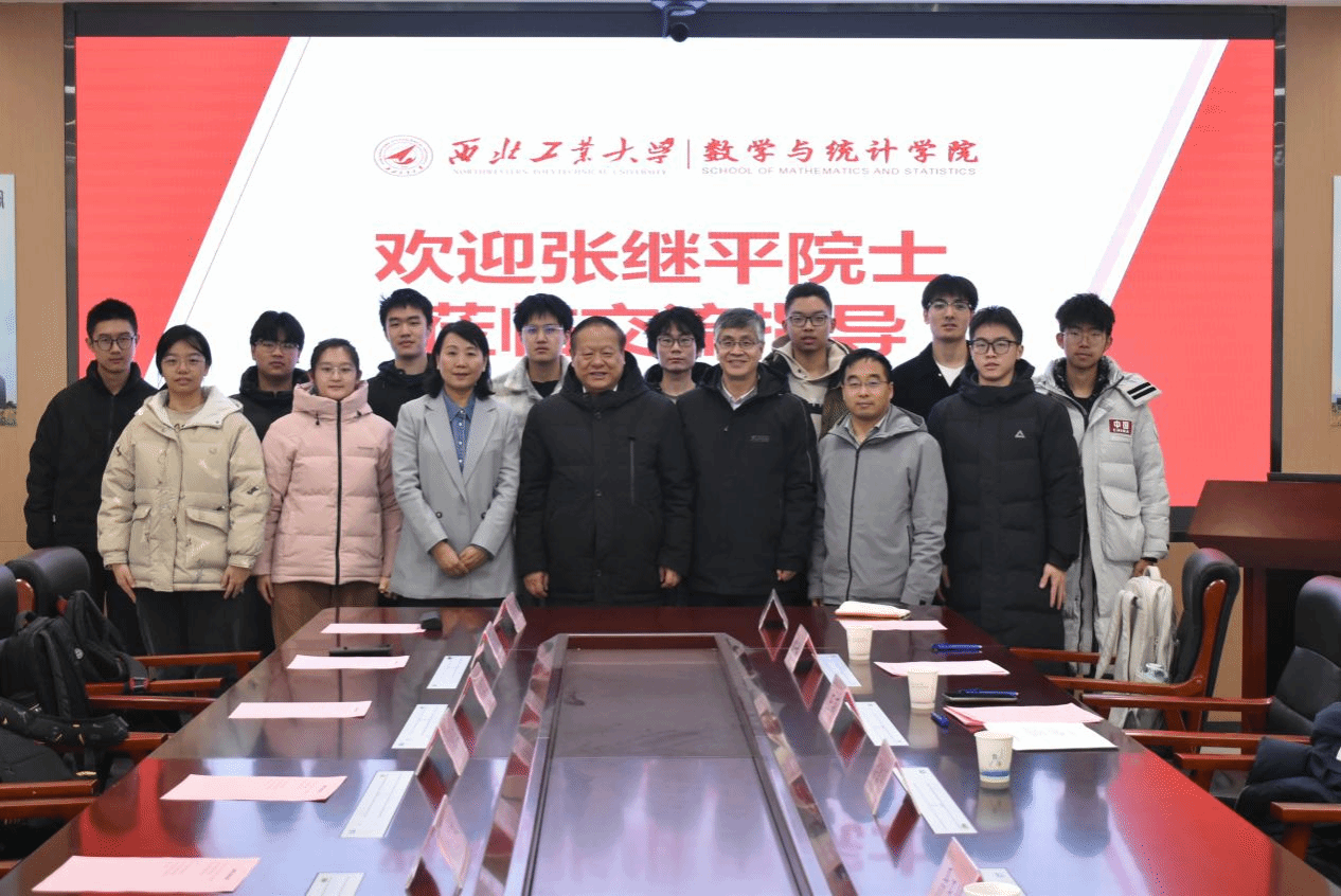 报告结束后,数学与统计学院还举行了张继平院士座谈会,活动在长安校区理学院201会议室举办,学院院长聂玉峰、党委书记王莉、副院长郭千桥、教学秘书李彦吉和23级拔尖班12名同学、22级朱冠桥同学参加了此次座谈会。会议由党委书记王莉主持。