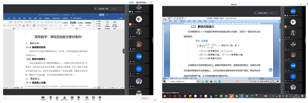 本次课程思政素材案例分组分享交流会,对学院课程思政素材库建设起到了关键的指导和示范引领作用,同时对学院教师后续课堂教学中专业知识与思政元素融会贯通有很大的裨益,后期学院将继续依托学院课程思政示范教学中心,为教师搭建课程思政建设交流、学习平台,扎实推进数学课程思政案例素材库建设工作,有效发挥数学课程育人作用,为提升立德树人成效和人才培养质量发挥积极的作用。