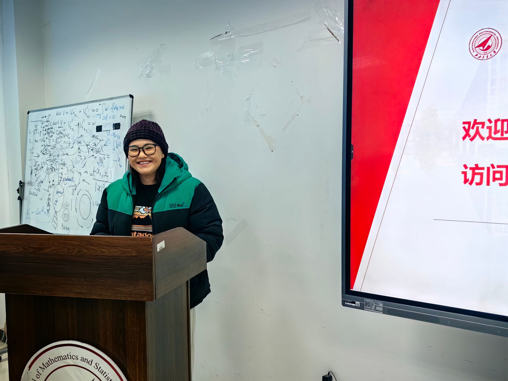 2024年12月25日,应国际教育学院与数学与统计学院诚挚邀请,蒙古科技大学(Mongolian university of science and technology,MUST)数学教师代表Lkhagvasuren Burmaa率领10名参与“2+2”统计学双学位项目的本科生来我院进行交流访问。数学与统计学院国际交流与合作办公室主任肖曼玉教授、应用概率统计系主任王亮教授、外事秘书李卓榕老师及学院4名2024届项目学生代表出席,交流会由李卓榕老师主持。