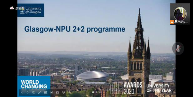 同时,英国格拉斯哥大学数学与统计学院院长Ian Strachan教授也隆重出席了本次会议。数统学院国际化负责人高昊教授围绕学校发展,学科特色,校园生活以及录取要求等方面展开了详细介绍。同时就学校2+2项目情况进行专门讲解,结合良好的学校学习科研环境和氛围,以我校优秀留学生冯留洋为例,鼓励大家积极申请。