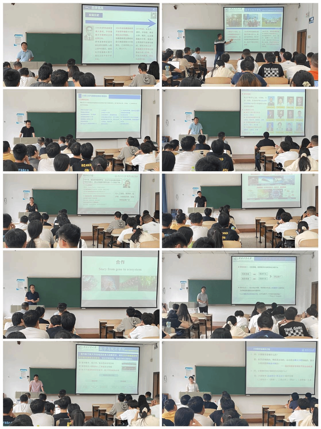 接下来,各科研团队的宣讲人夏健康副教授、冀腾宇助理教授、张慧副教授、王瑞武教授、岳晓乐教授、白延东副教授、蔡力教授、张硕副教授、雷佑铭教授、赵丽静副教授依次对团队发展、研究方向及研究生培养情况做了详细介绍。