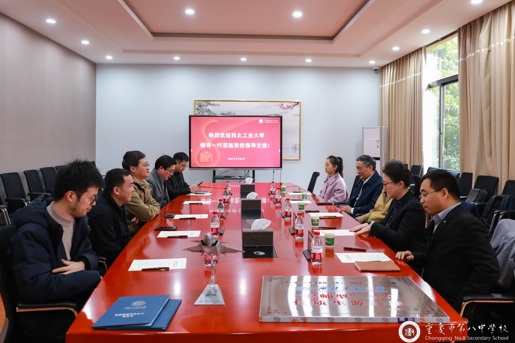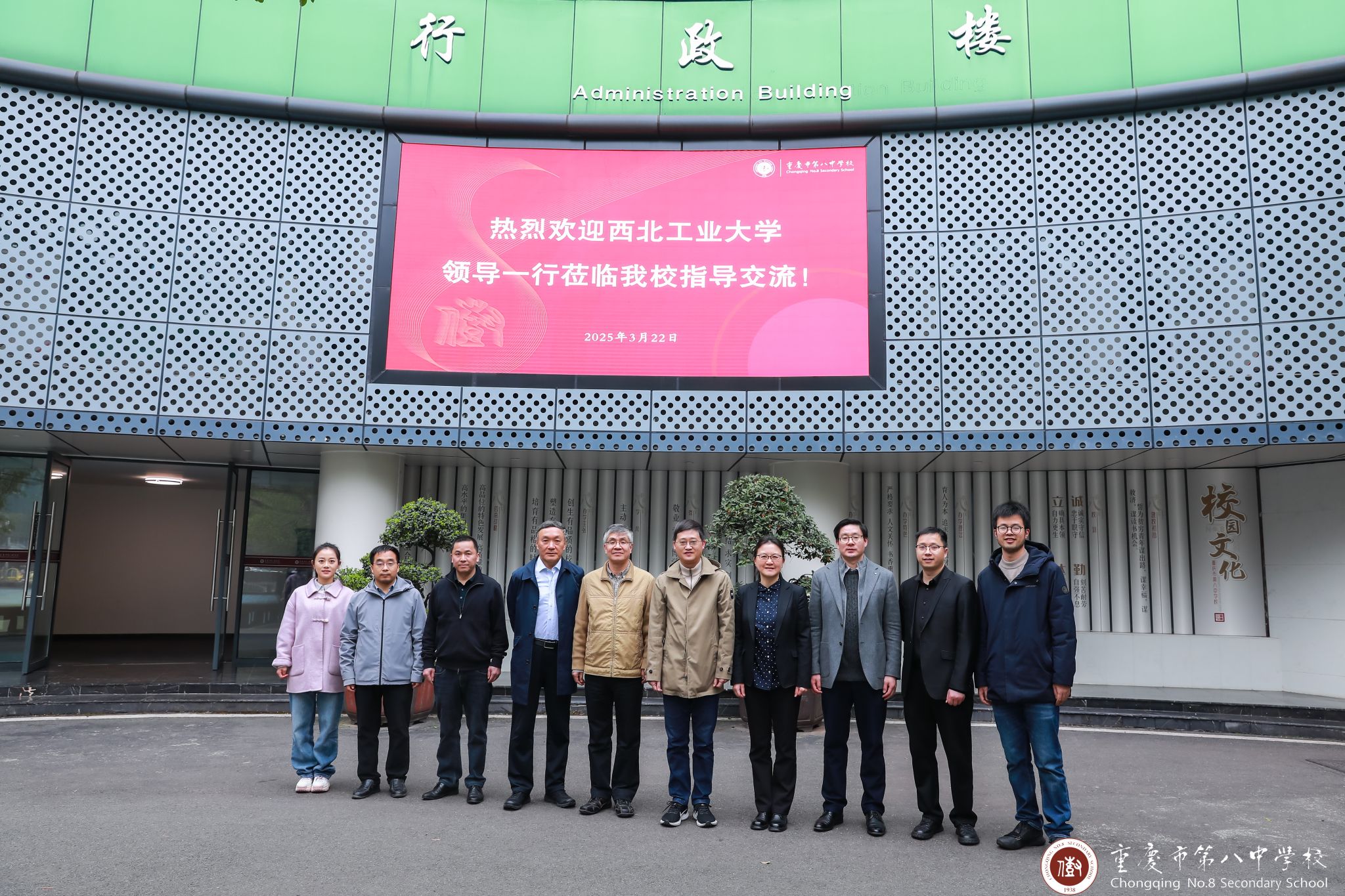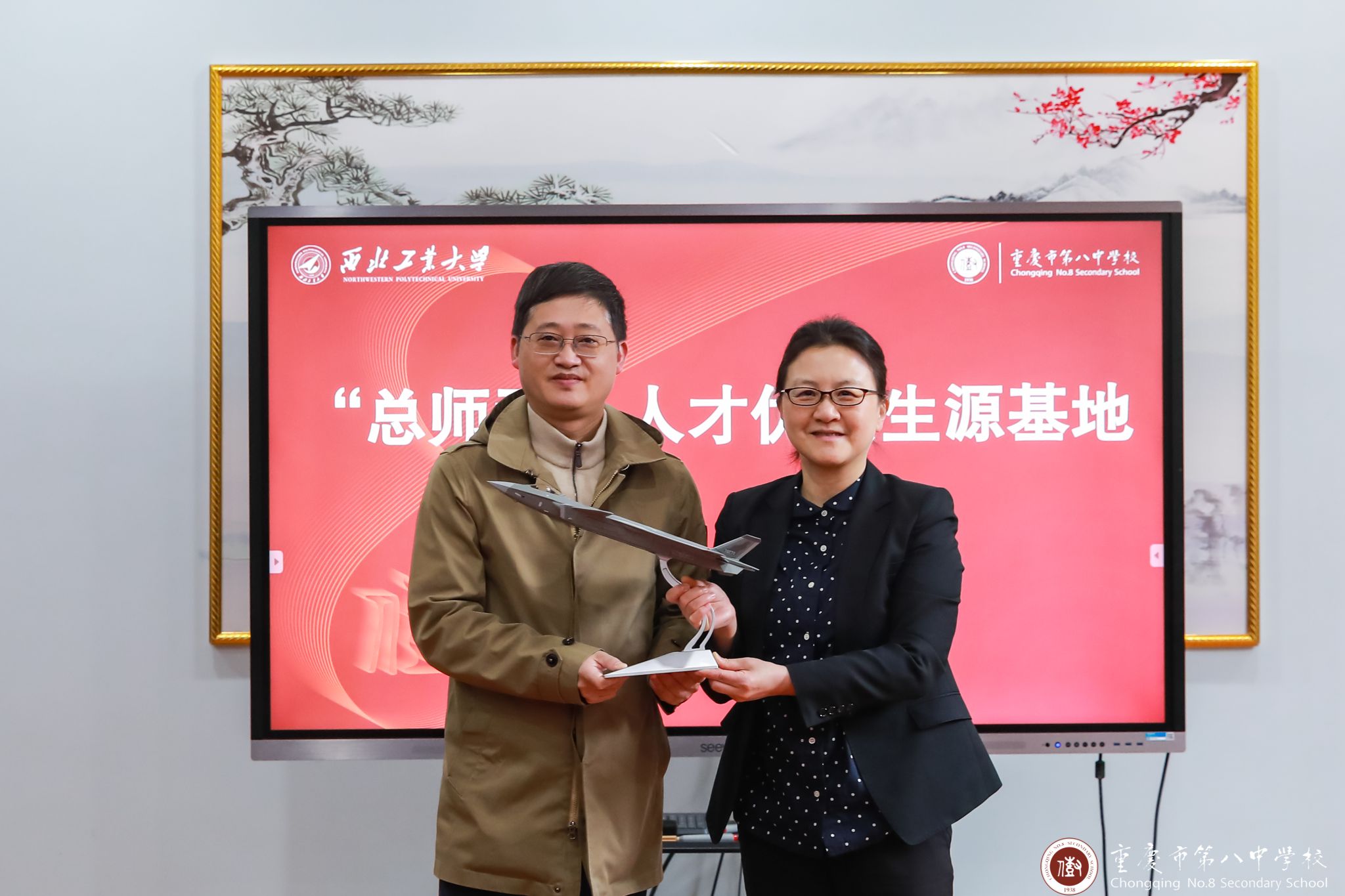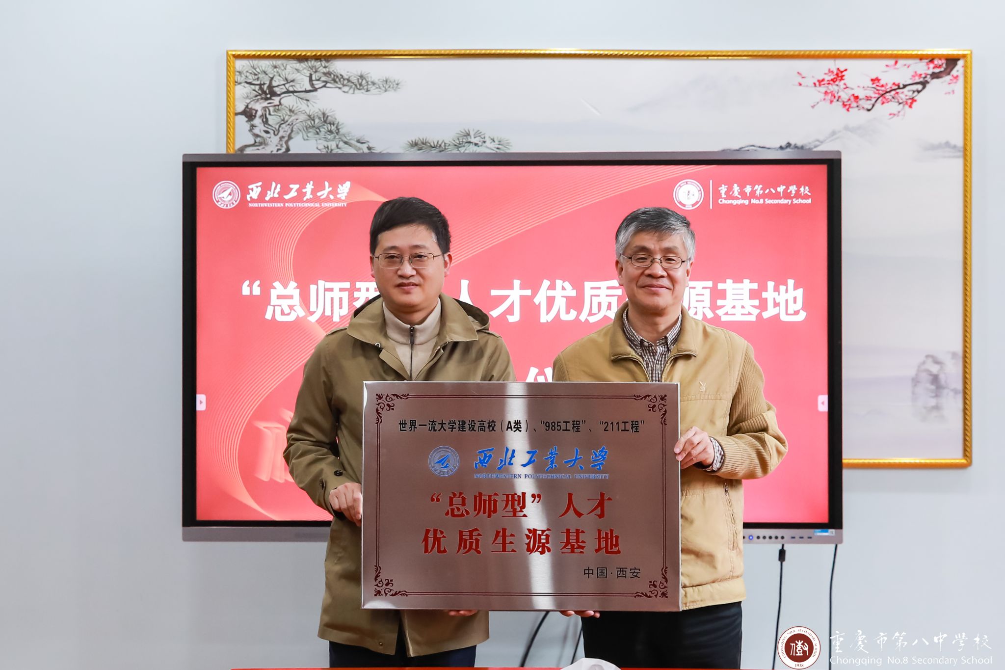 西北工业大学与重庆市第八中学校“总师型”人才优质生源基地授牌仪式在重庆市第八中学校行政楼3楼接待室隆重举行。重庆市第八中学校副校长梅家烨、教务处主任熊翼、教务处副主任兼高二年级主任范兴波、重庆八中教务处副主任兼高二年级副主任谢凯、高三年级副主任陈莹出席了本次仪式。