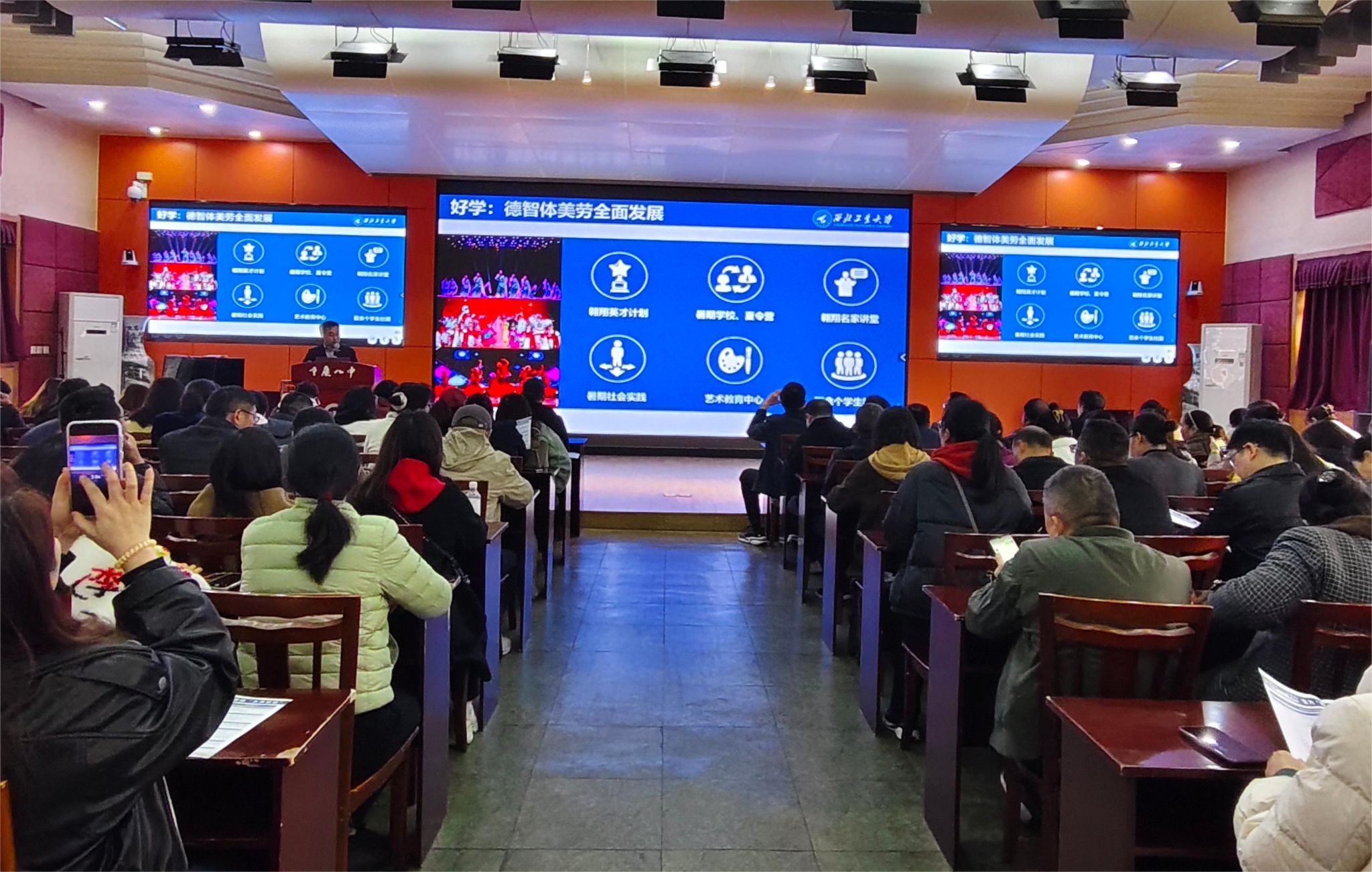 在授牌仪式之后,郭千桥副院长面向200余位高三家长进行了招生宣讲,详细介绍了学校的招生政策、专业设置、本研衔接特色班以及未来发展前景,帮助家长们更好地了解西北工业大学,为孩子们的升学规划提供指导。