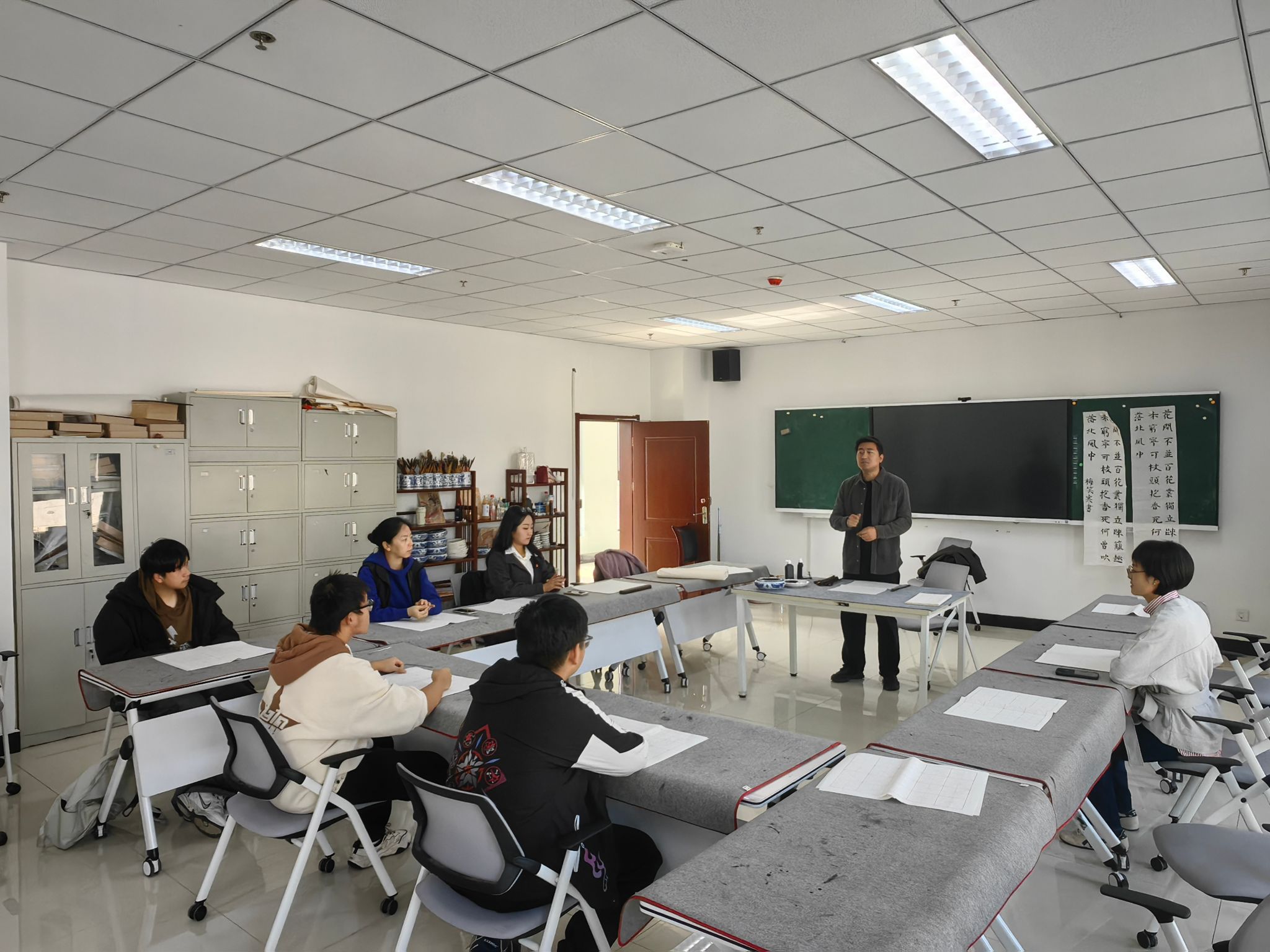 为传承中华优秀传统文化,以艺术浸润涵养党性修养,10月30日,韩国av 办公室党支部组织全体党员与部分学生代表赴学校艺术教育中心,参加“笔墨传情·艺润初心”书法体验活动。