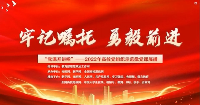 师生共同观看“牢记嘱托,勇毅前进”2022年高校党组织示范微党课,集中展示高校党的建设和思想政治工作发生的格局性变化、取得的历史性成就,引导激励师生奋进新征程、建功新时代。本次微党课中,主讲人们深入浅出,微言大义,围绕学习贯彻习近平总书记考察学校重要讲话或给学校师生重要回信精神,讲述牢记习近平总书记殷殷嘱托、坚持为党和国家事业发展服务、传承弘扬“西迁精神”“两弹一星”精神、推进高水平科技自立自强等情况。