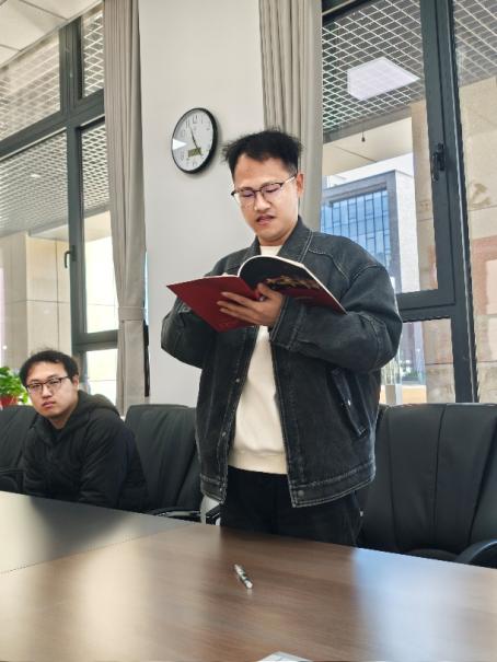 11月29日上午,韩国av 硕士生第八党支部在海天苑大楼E101开展 “深入学习‘十五五’规划建议,奋力推进中国式现代化”主题党日活动,会议由支部副书记王梦甜同志主持,全体党员通过系统学习、交流研讨,深化了对国家战略部署的理解,明确了青年党员的时代责任与奋斗方向。