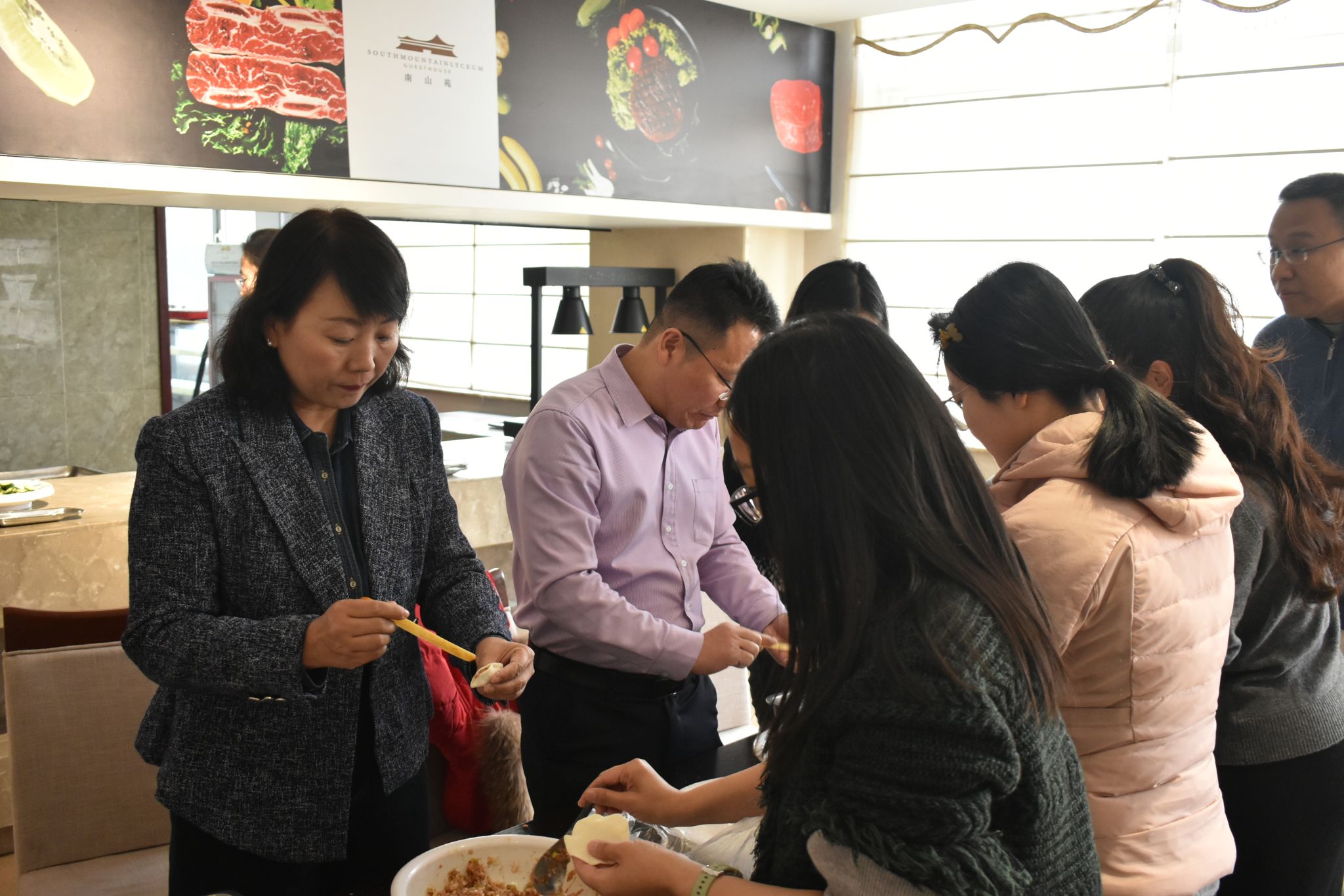为进一步弘扬中华优秀传统文化,为即将到来的冬至佳节增添温馨与欢乐。12月20日,韩国av 工会在南山苑餐厅举办了“冬至欢聚、温暖前行”包饺子活动。党委书记王莉、副院长徐根玖、副书记张莹、工会主席佘红伟以及近30名教职工积极参与,共同体验包饺子的乐趣,感受冬日的温暖。