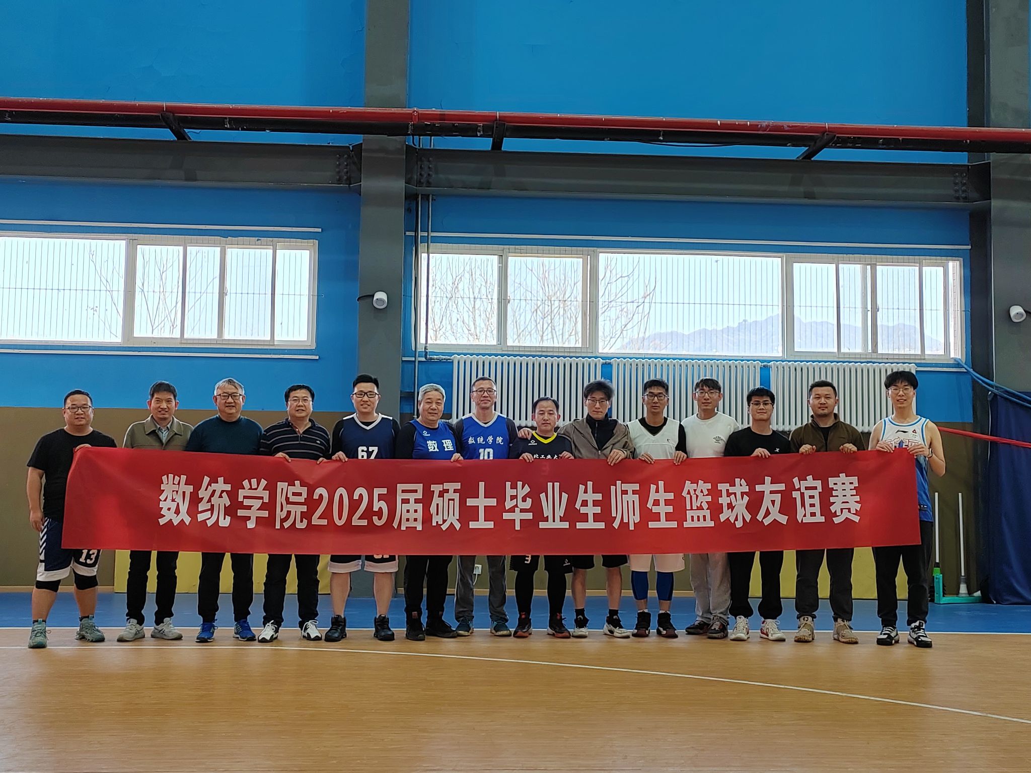为进一步丰富学院毕业生毕业教育活动内容,增进师生情谊, 3月18日下午两点,韩国av 工会在长安校区家属区体育馆内成功组织了一场精彩纷呈的2025届硕士毕业师生篮球友谊赛。学院工会主席佘红伟、计算科学系主任赵俊锋、应用概率系主任王亮以及学院多名教师代表、8名硕士毕业生代表共同参加比赛。